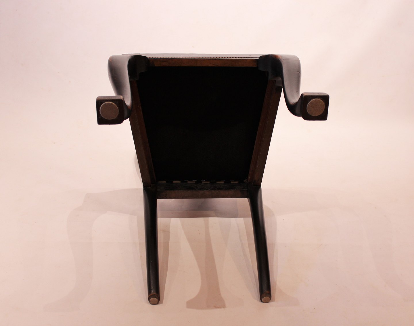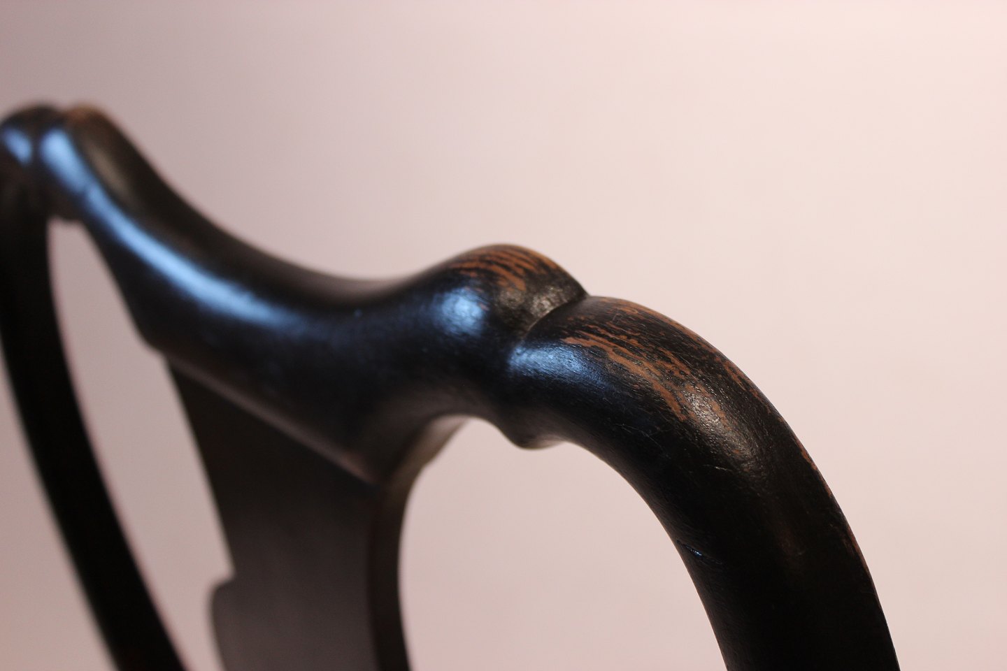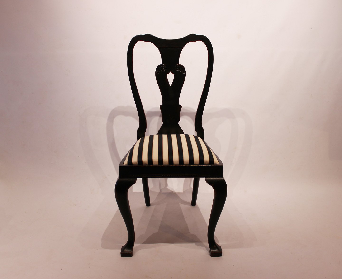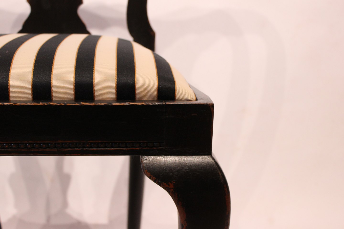 Black painted dining chair in the style of Rococo from the 1860s. The chair is in great vintage condition and with striped upholstery.