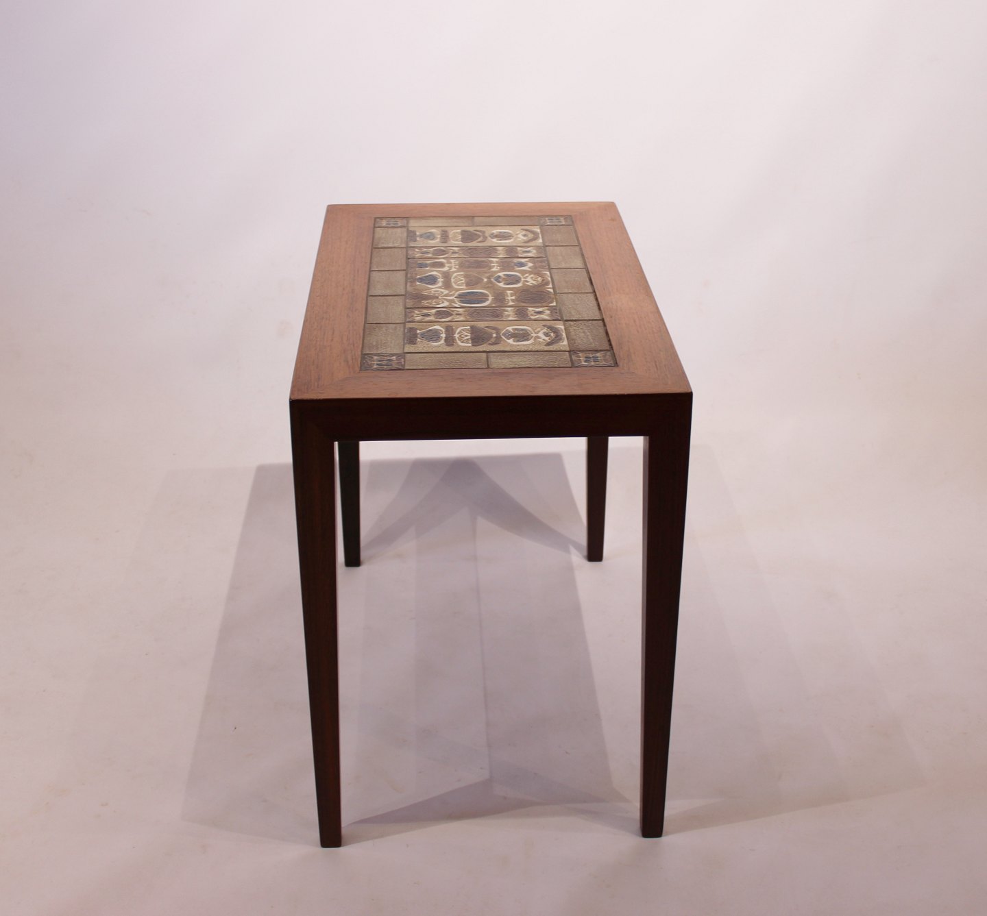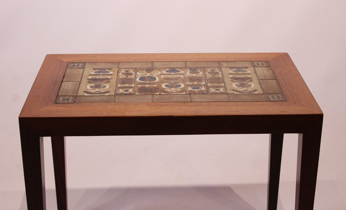 Sidetable in rosewood with Royal Copenhagen tiles by Severin Hansen for Haslev Furniture Factory.