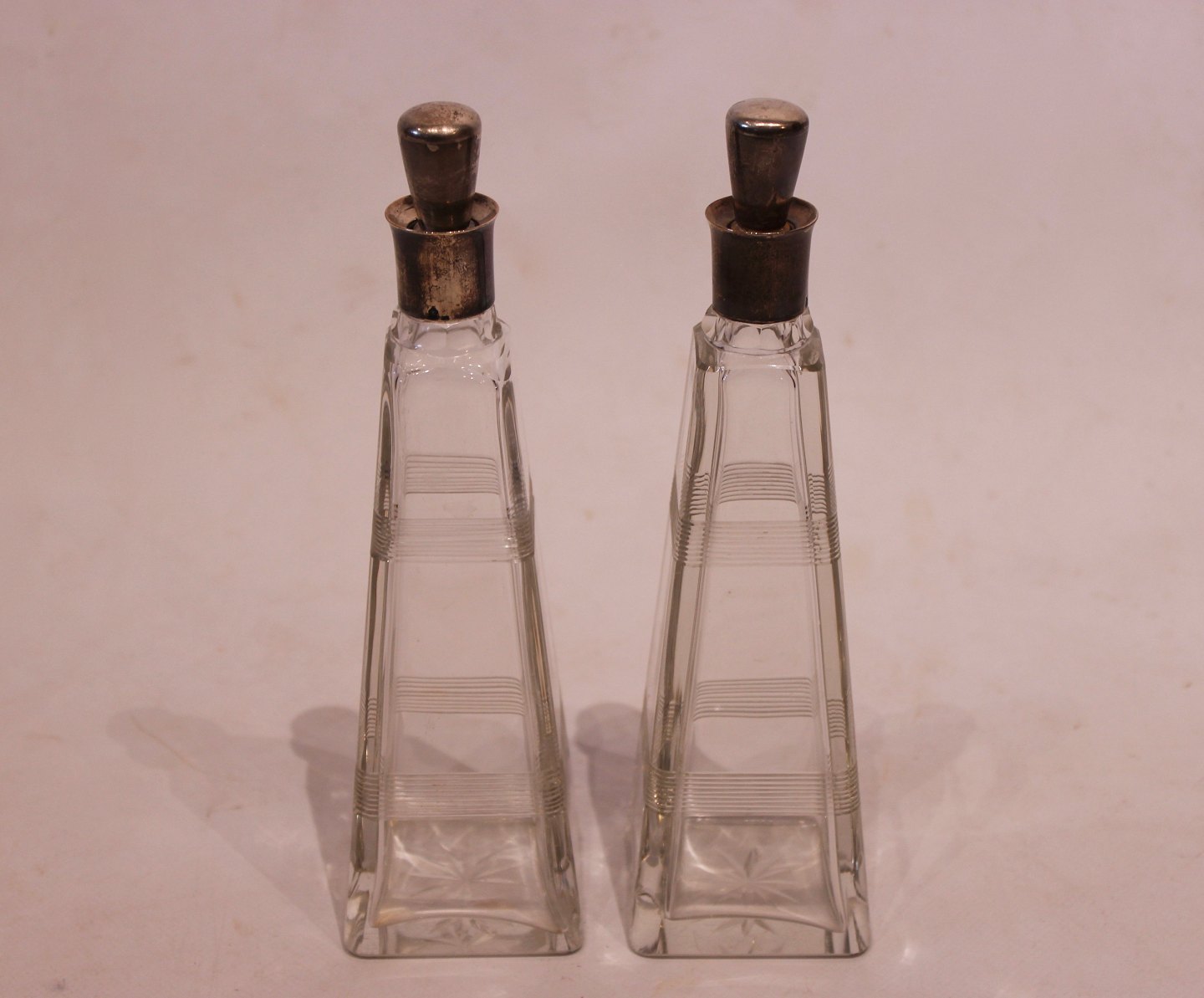 A pair of glass water decanters from the 1920s, both in great vintage condition.