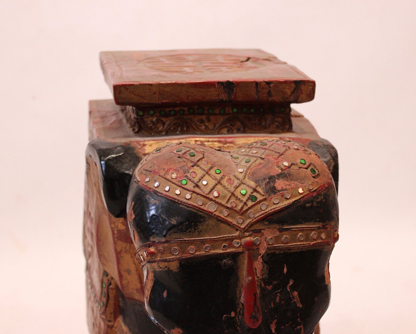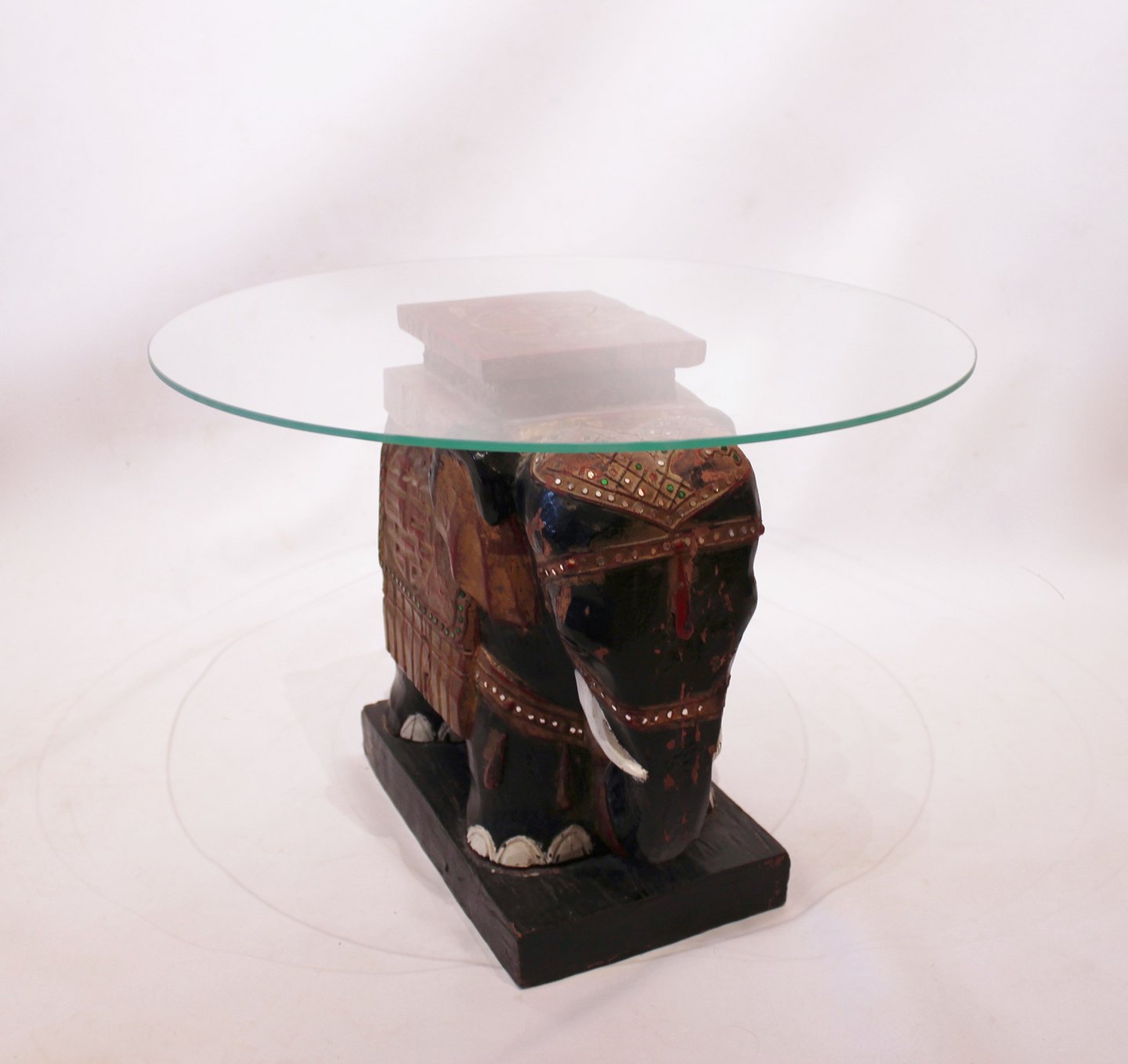 A pair of sidetables with glass plate and bottom of chinese elephants of orignal painted wood and patina from around the 1880s. The tables are in great antique condition.