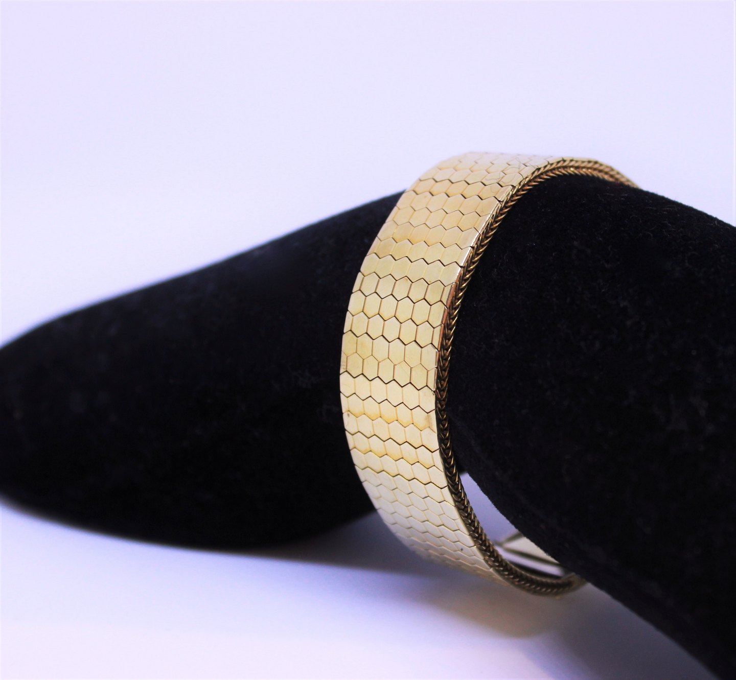 SolgtBred italiensk armlænke i 14 kt. guld og mønsteret Harlekin. Lænken består af 6 rækker og stemplet JoK.