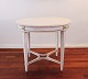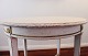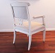Gustavian set consisting of sofa, side table, two armchairs and two dining chairs, decorated with bronze ornaments, 1840.
