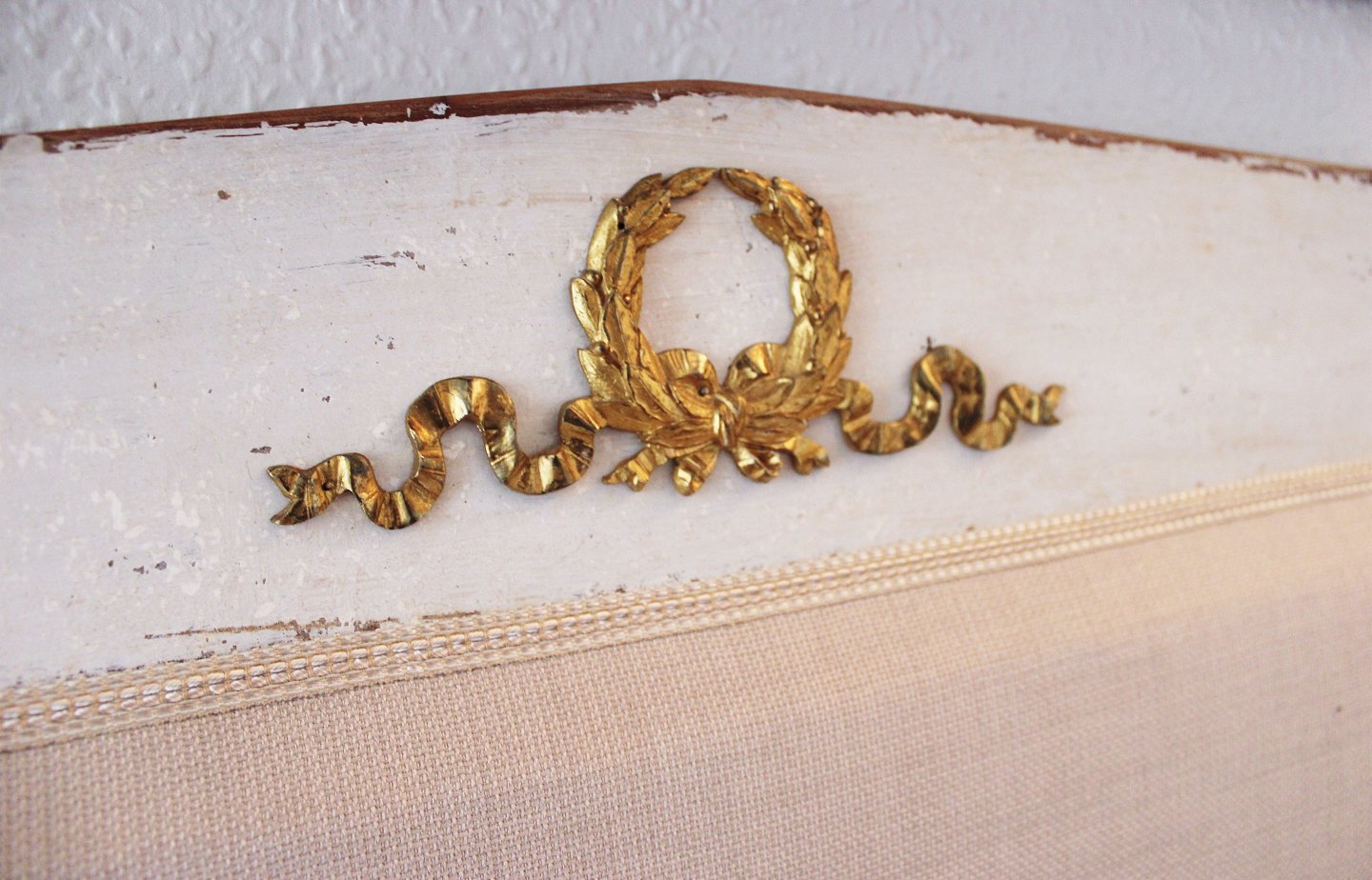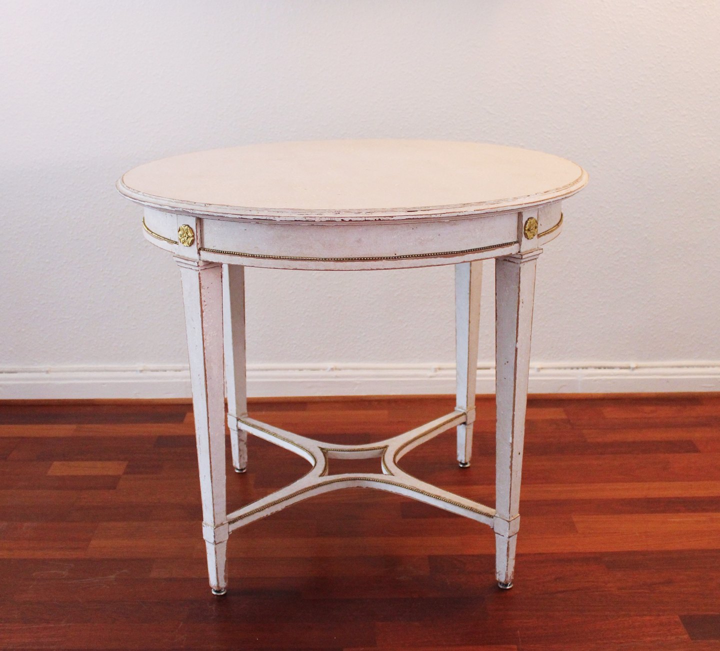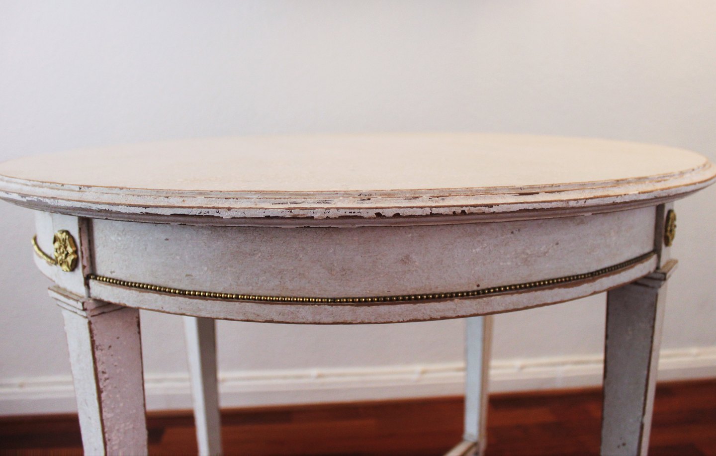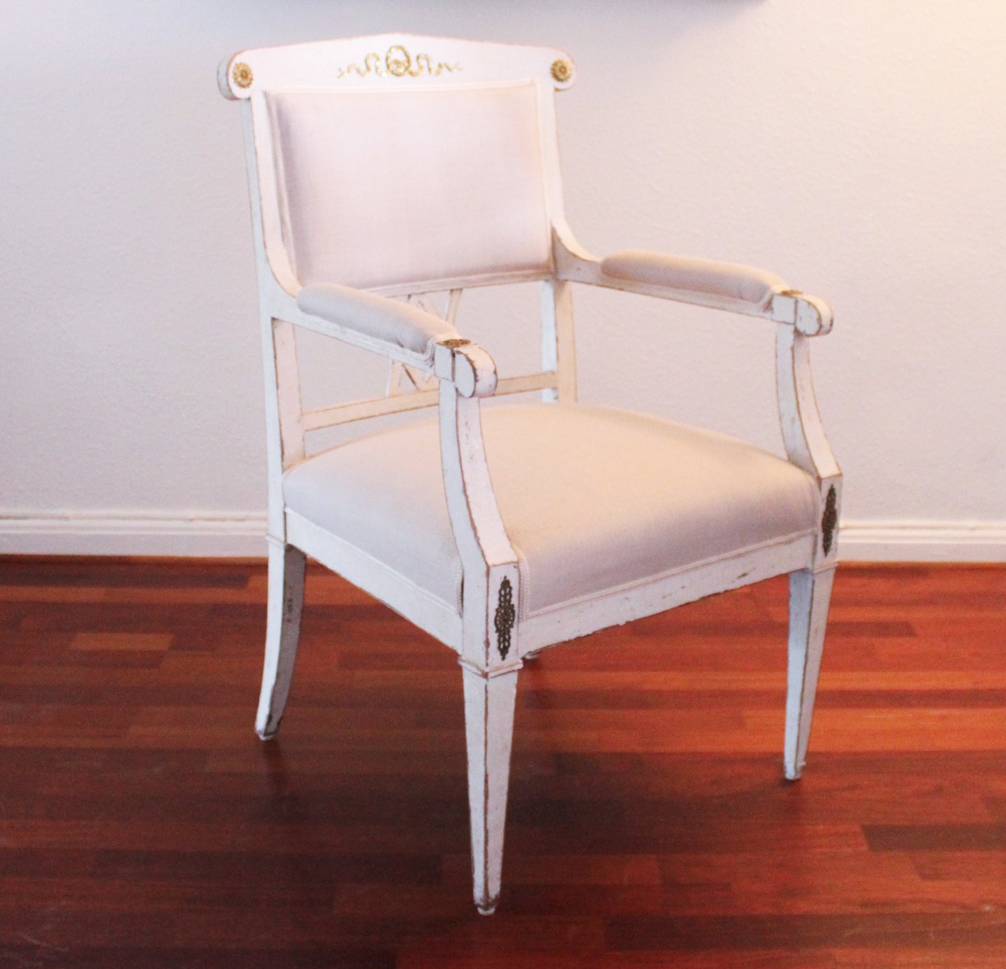 Gustavian set consisting of sofa, side table, two armchairs and two dining chairs, decorated with bronze ornaments. The set is in great vintage condition and from the year 1840.