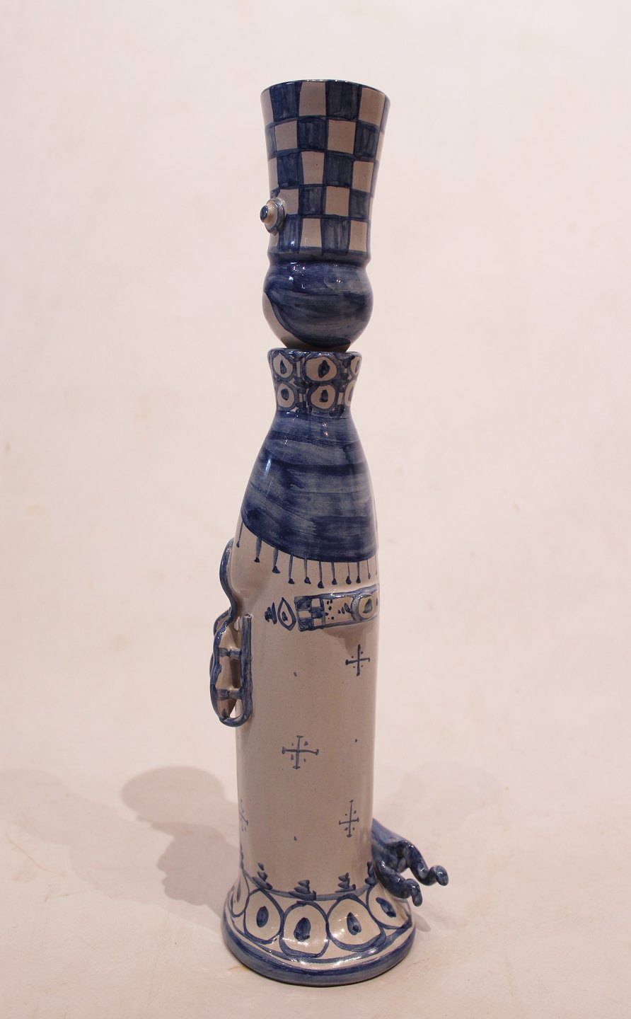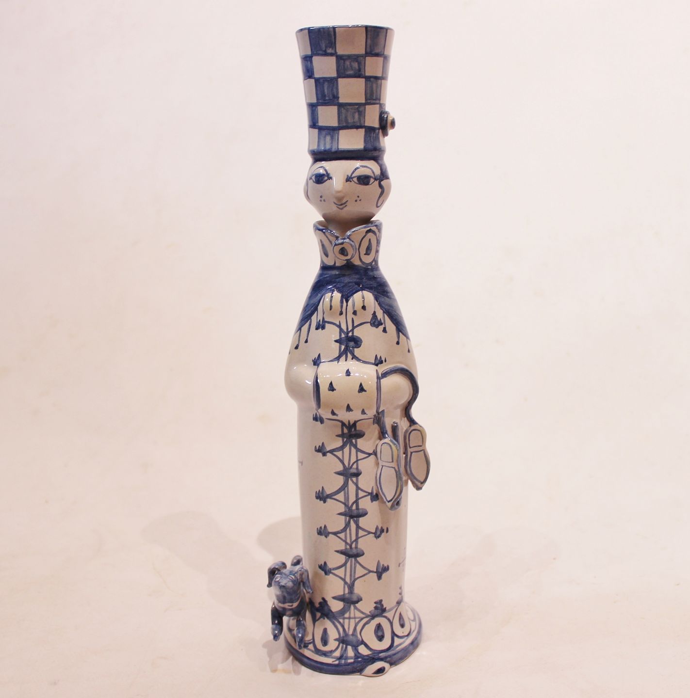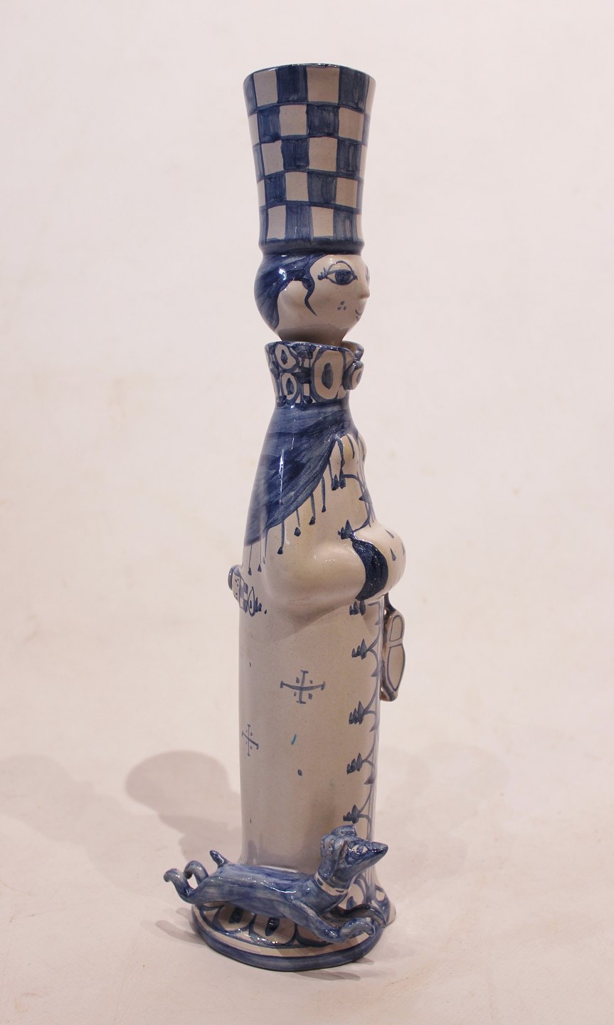 Keramik figur "Vinter", M23, fra serien "De fire årstider" designet af Bjørn Wiinblad. Denne figur er fra 1978 og er dekoreret i hvide og blå farver.