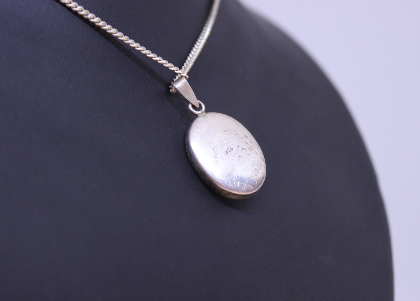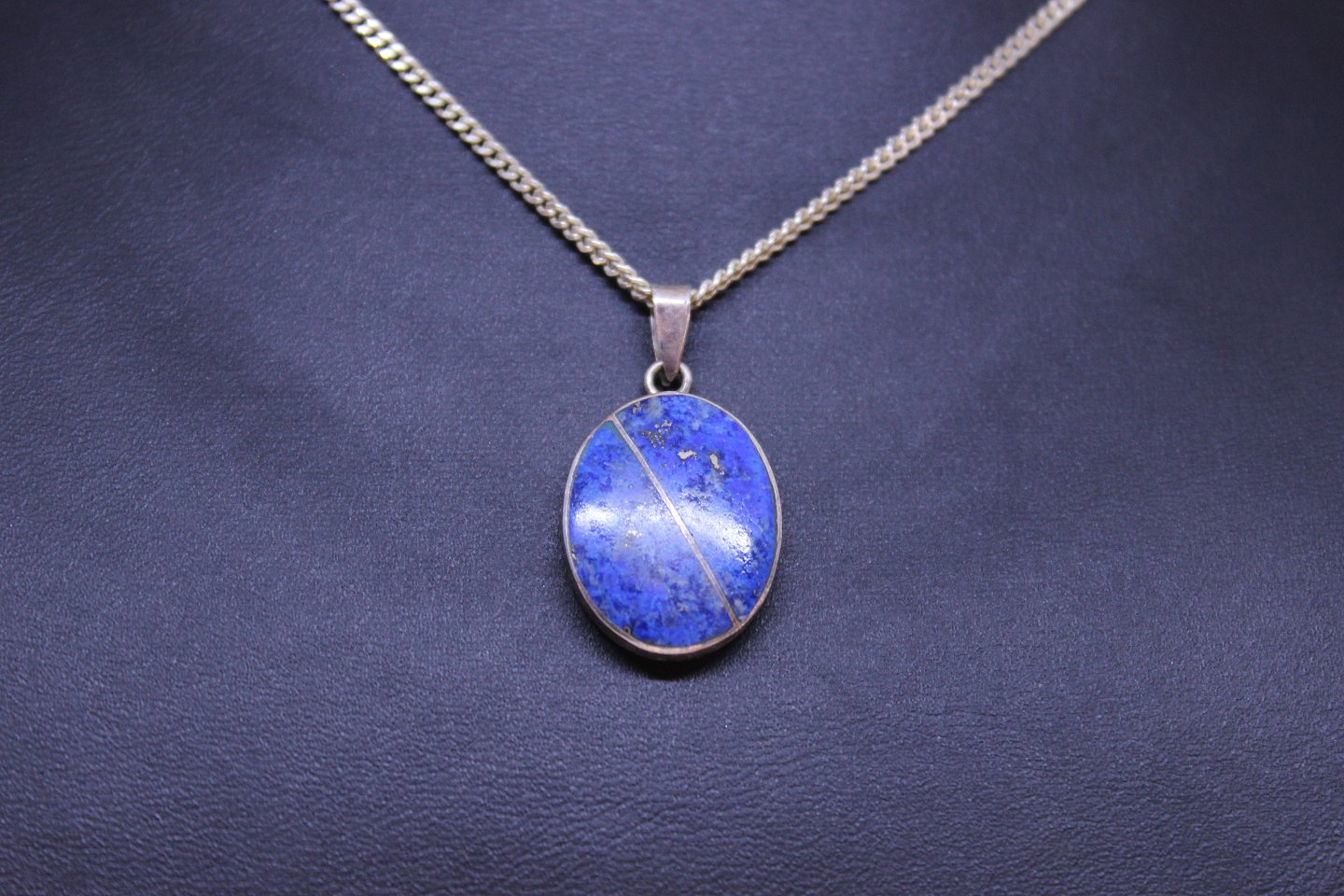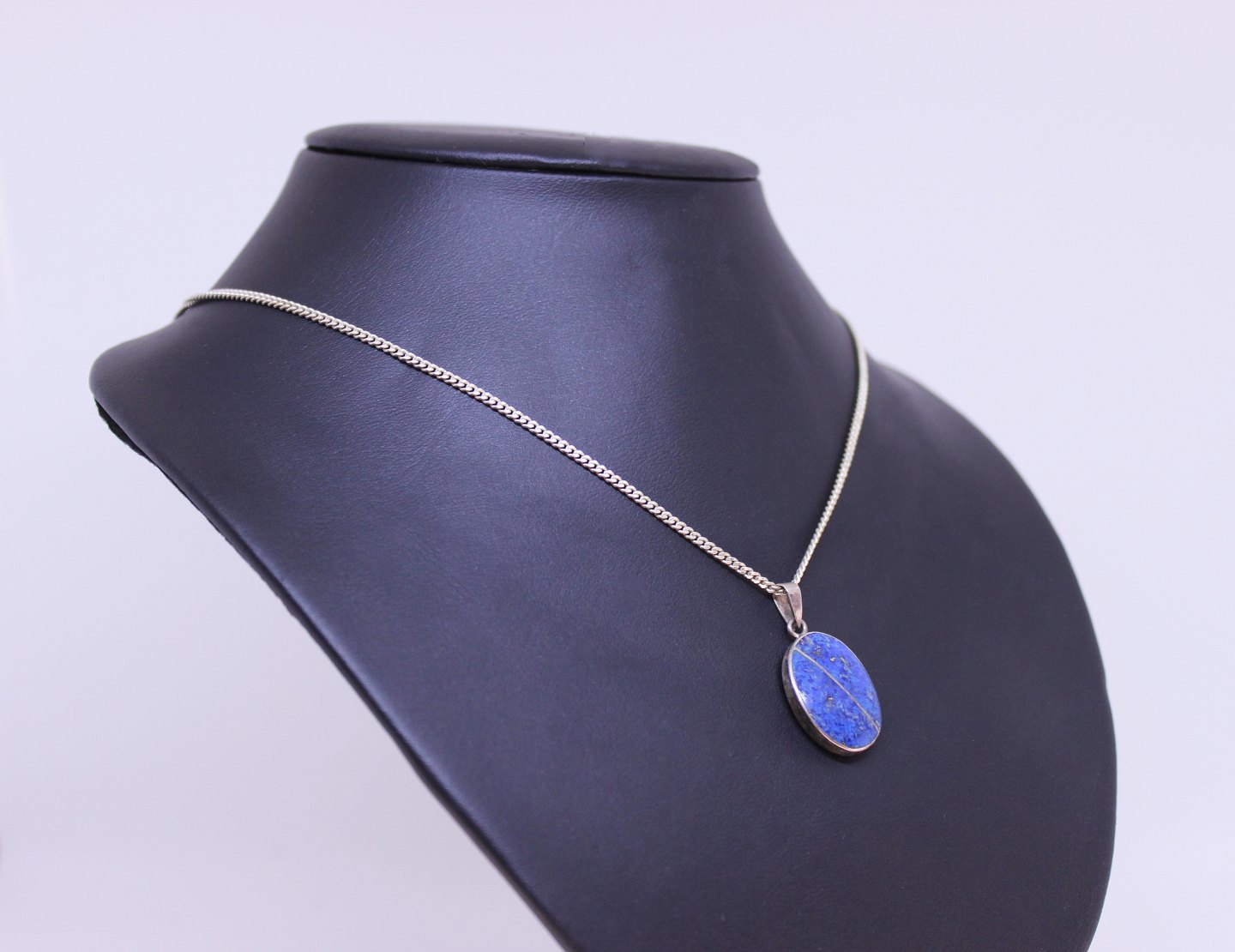 Halskæde af 830 sølv og med blåt vedhæng af 925 sterling sølv.