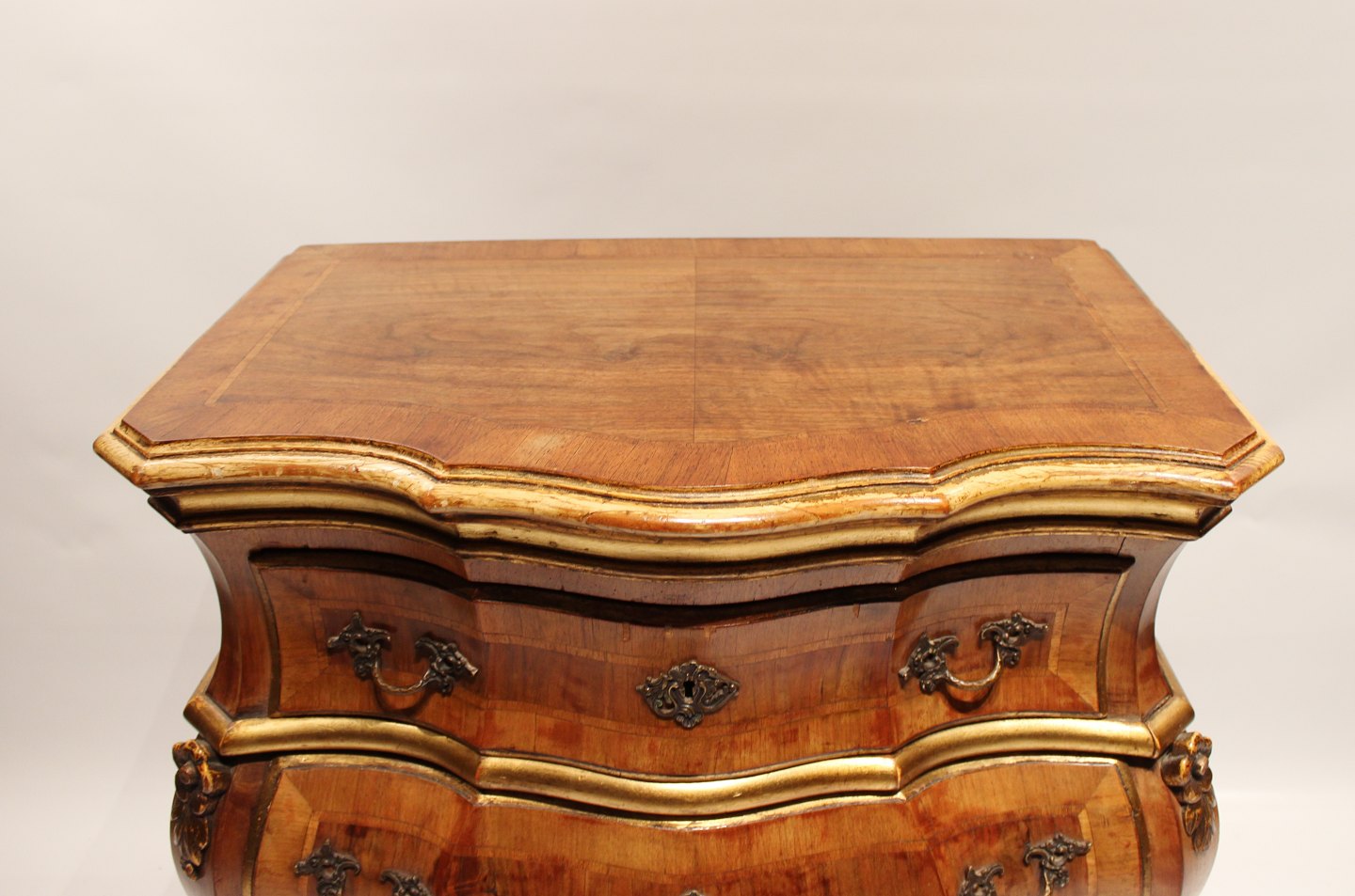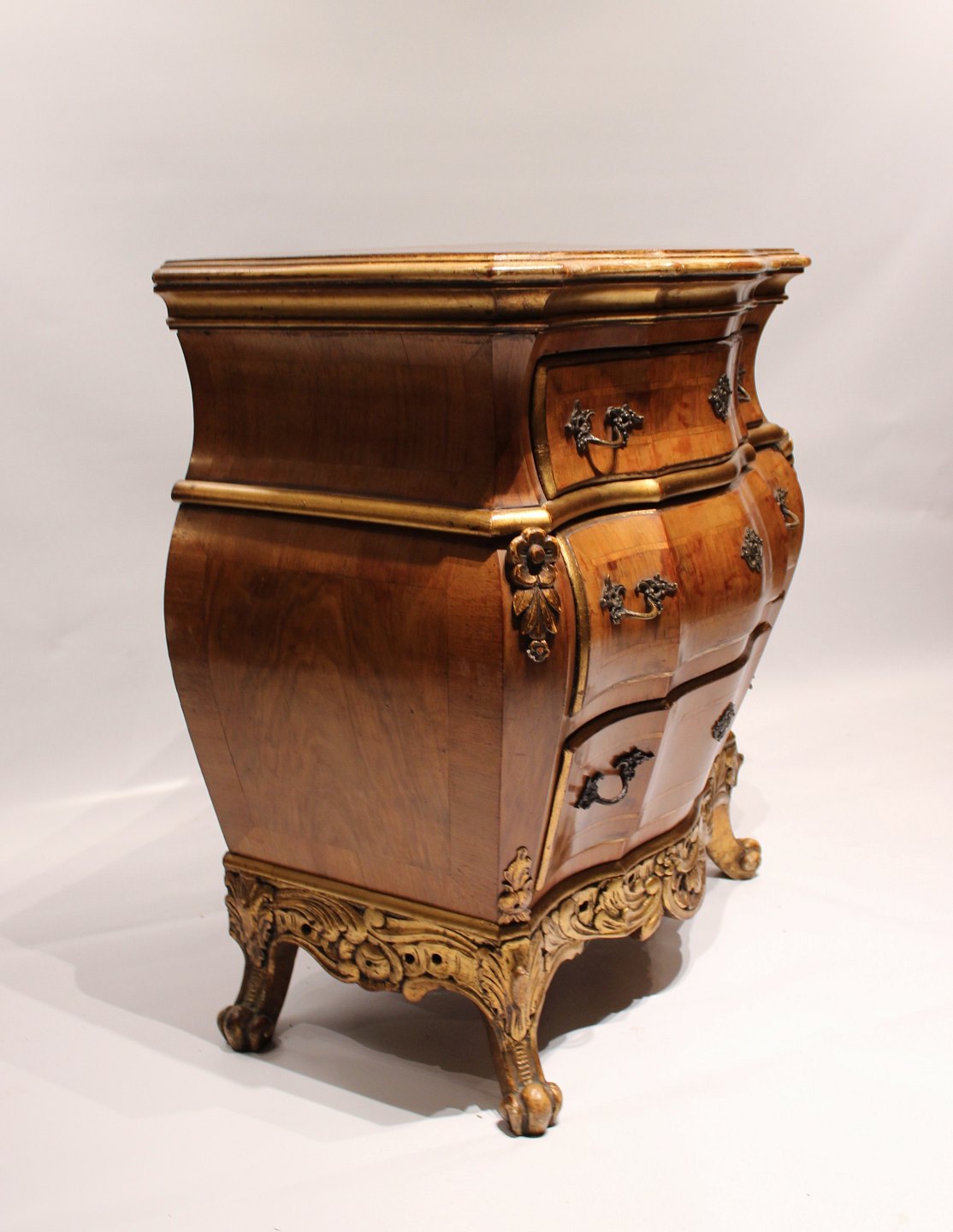 SolgtRokoko bombéformet nøddetræ kommode fra Danmark omkring år 1880. Kommoden er i flot antik stand.