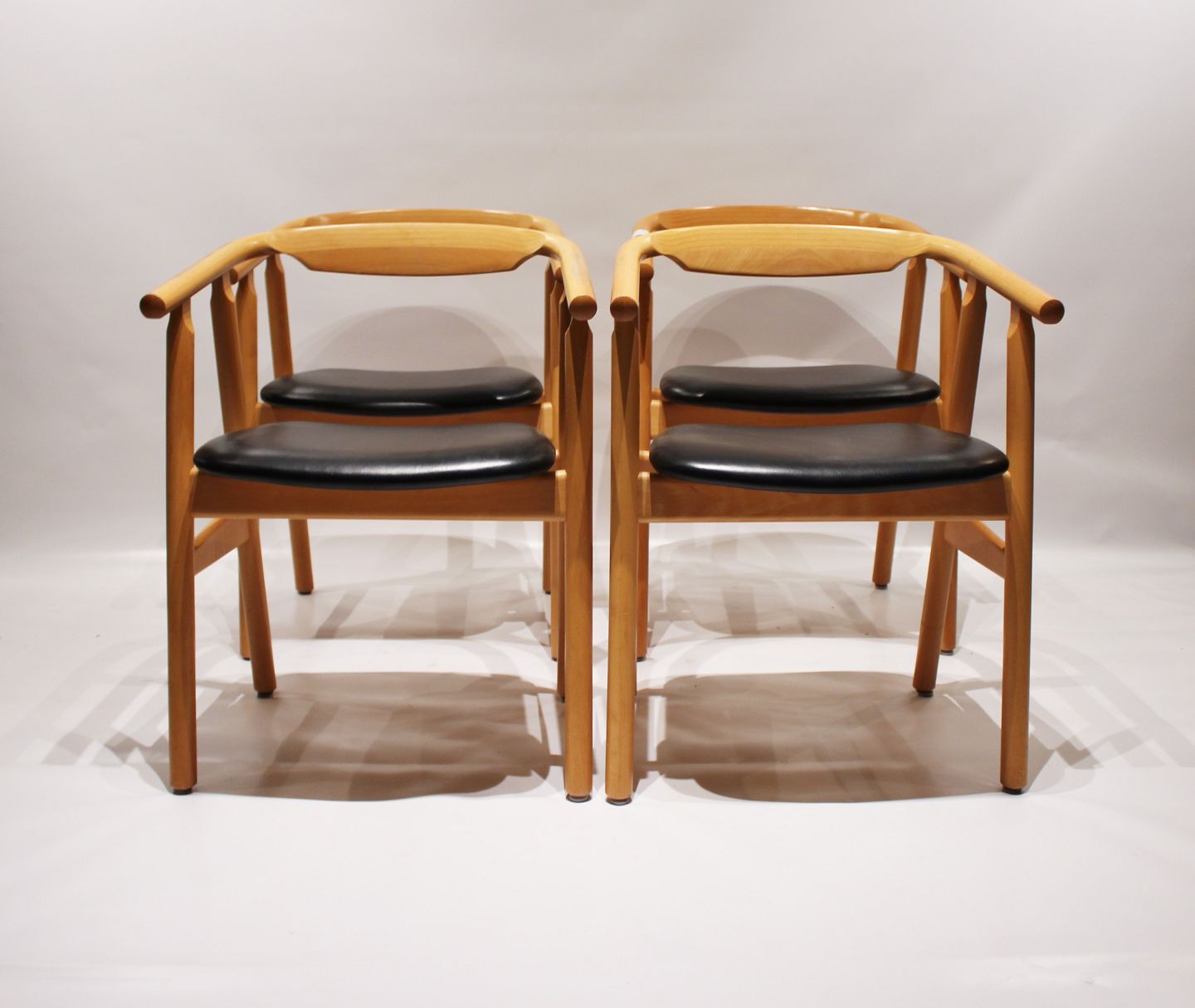 Set of 4 dining room chairs, model GE525, by Hans J. Wegner and Getama, 1960s.