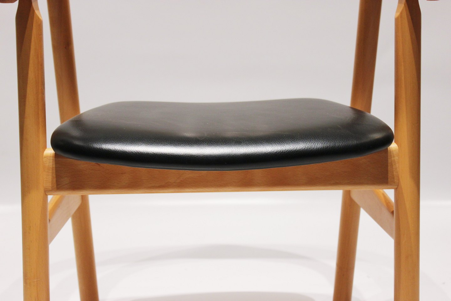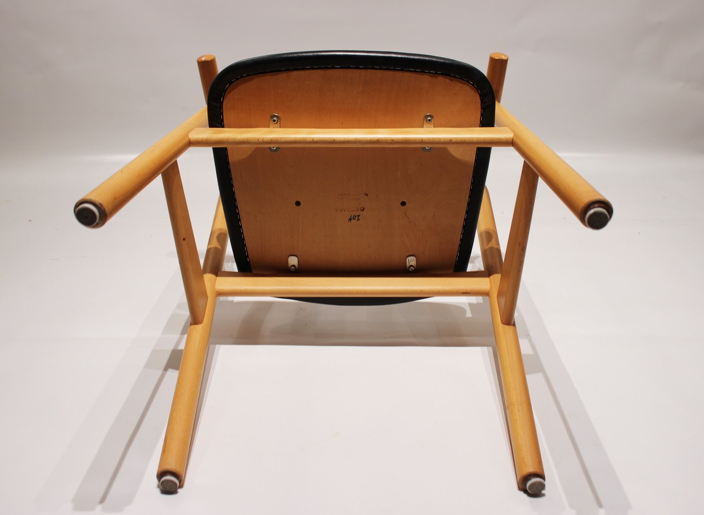 Set of 4 dining room chairs, model GE525, designed by Hans J. Wegner and manufactured by Getama in the 1960s. The chairs are of ash and upholstered with black leather.