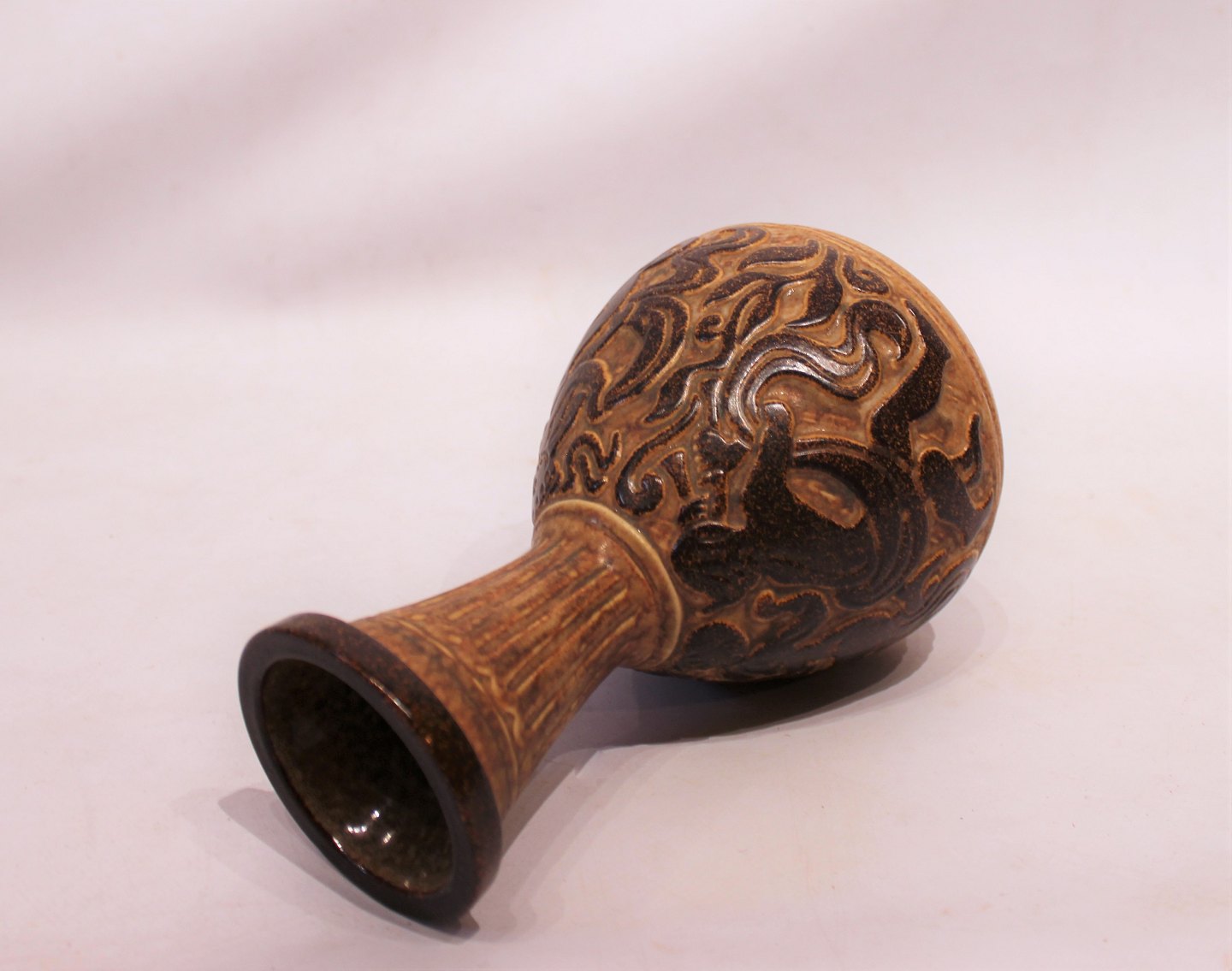 Keramik vase i brune farver nummeret 2047 af Michael Andersen og Søn. Vasen er i flot brugt stand.
