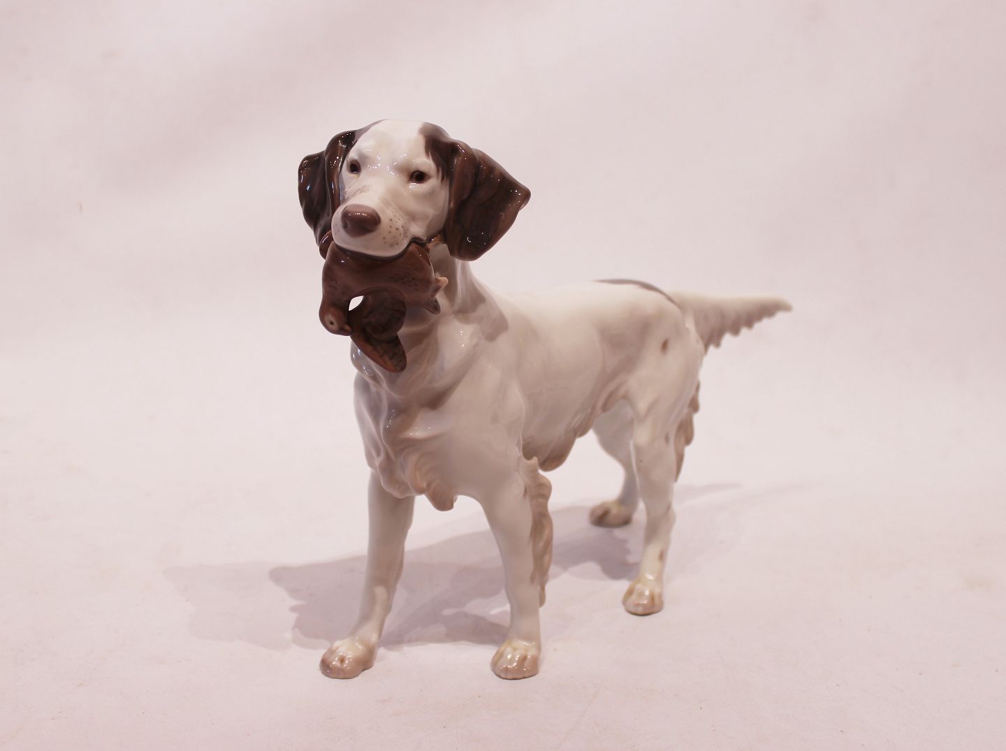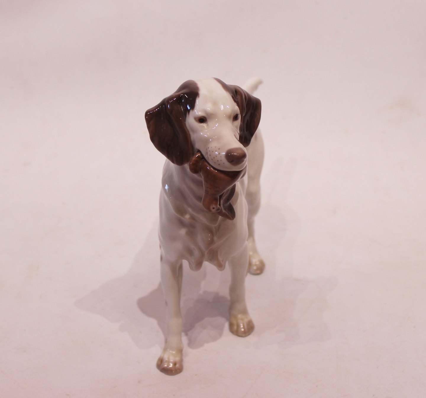 Porcelain figure - Hunting dog with prey - No. 2015 - Lauritz Jensen - Bing and Grondahl.
