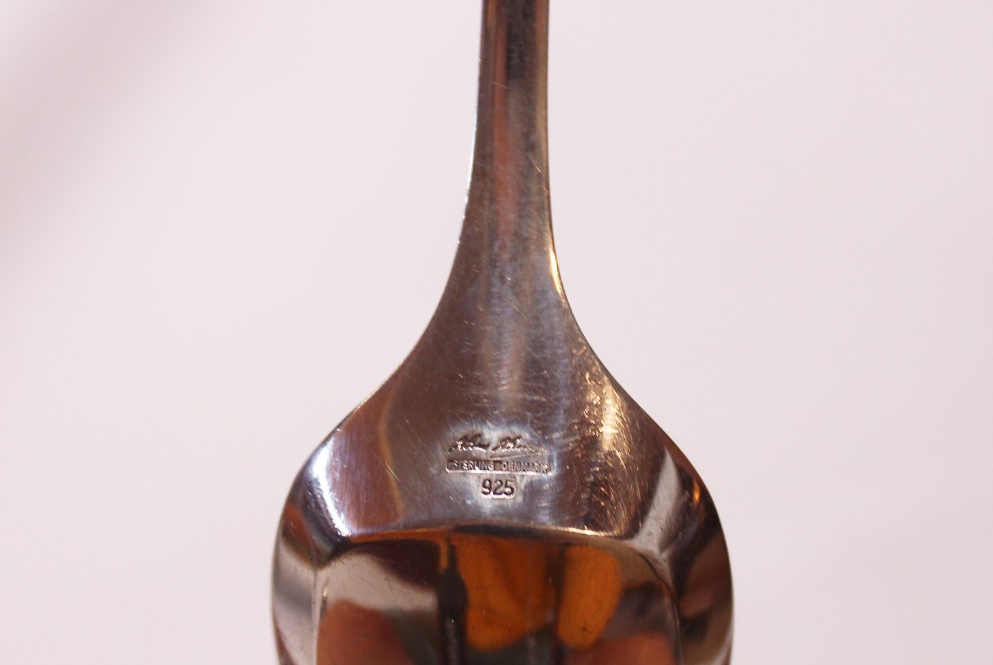 Dessert spoon (800 DKK) and teaspoon (400 DKK) in Kristine by Hans Hansen. Ask for number in stock.