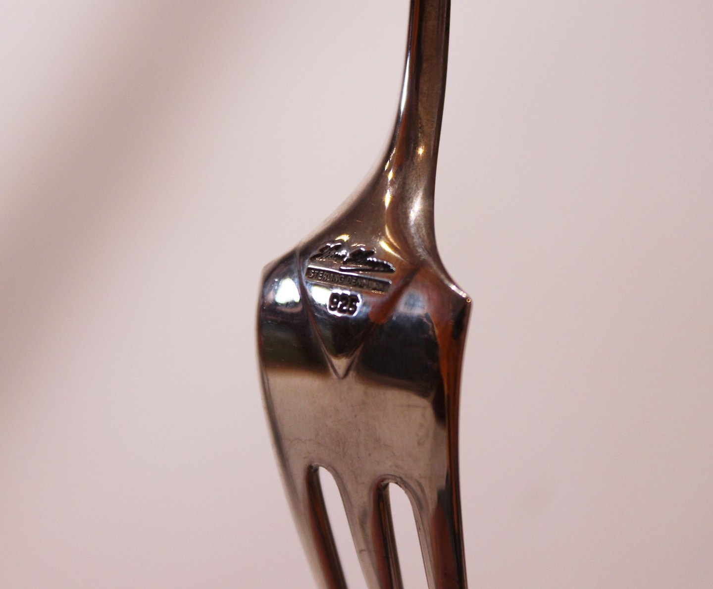 View the price in the text descriptionCake fork (475 DKK) and teaspoon (300 DKK) in Charlotte by Hans Hansen. Ask for number in stock.