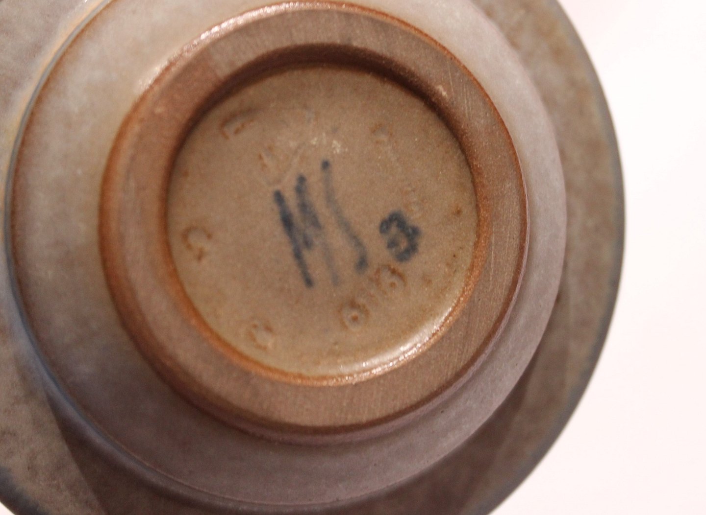 Small ceramic bowl in dark grey and blue colors from the 1960s. The bowl is in great vintage condition and by Michael Andersen & Son.