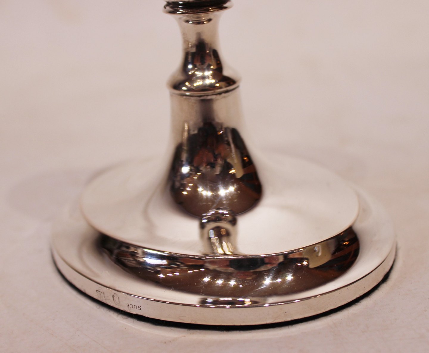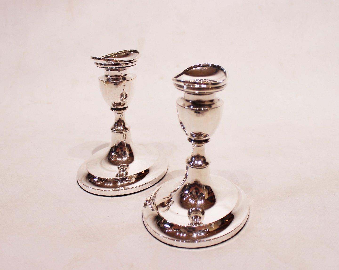 A pair of candlesticks of hallmarked silver, in great vintage condition. We have an extra in stock.