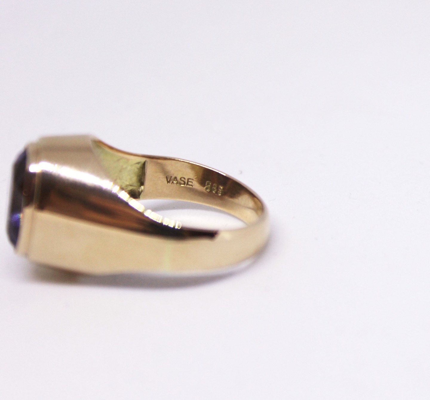 Ring of 14 ct. gold decorated with amethyst and stamped VASA.