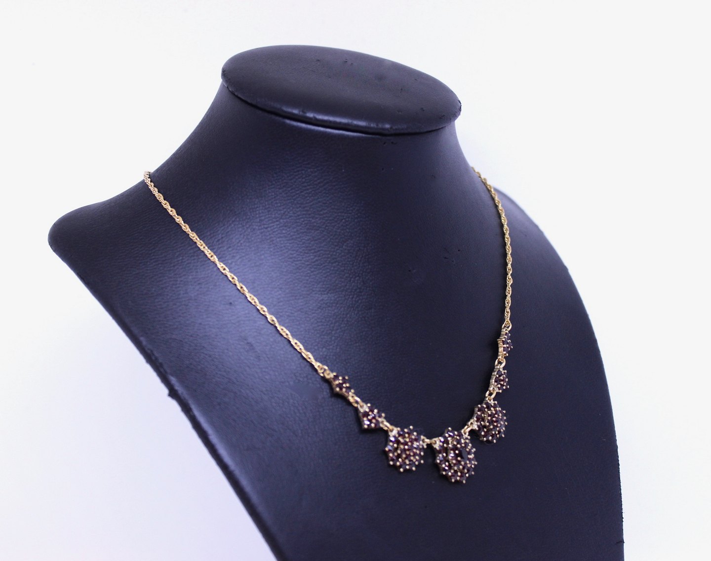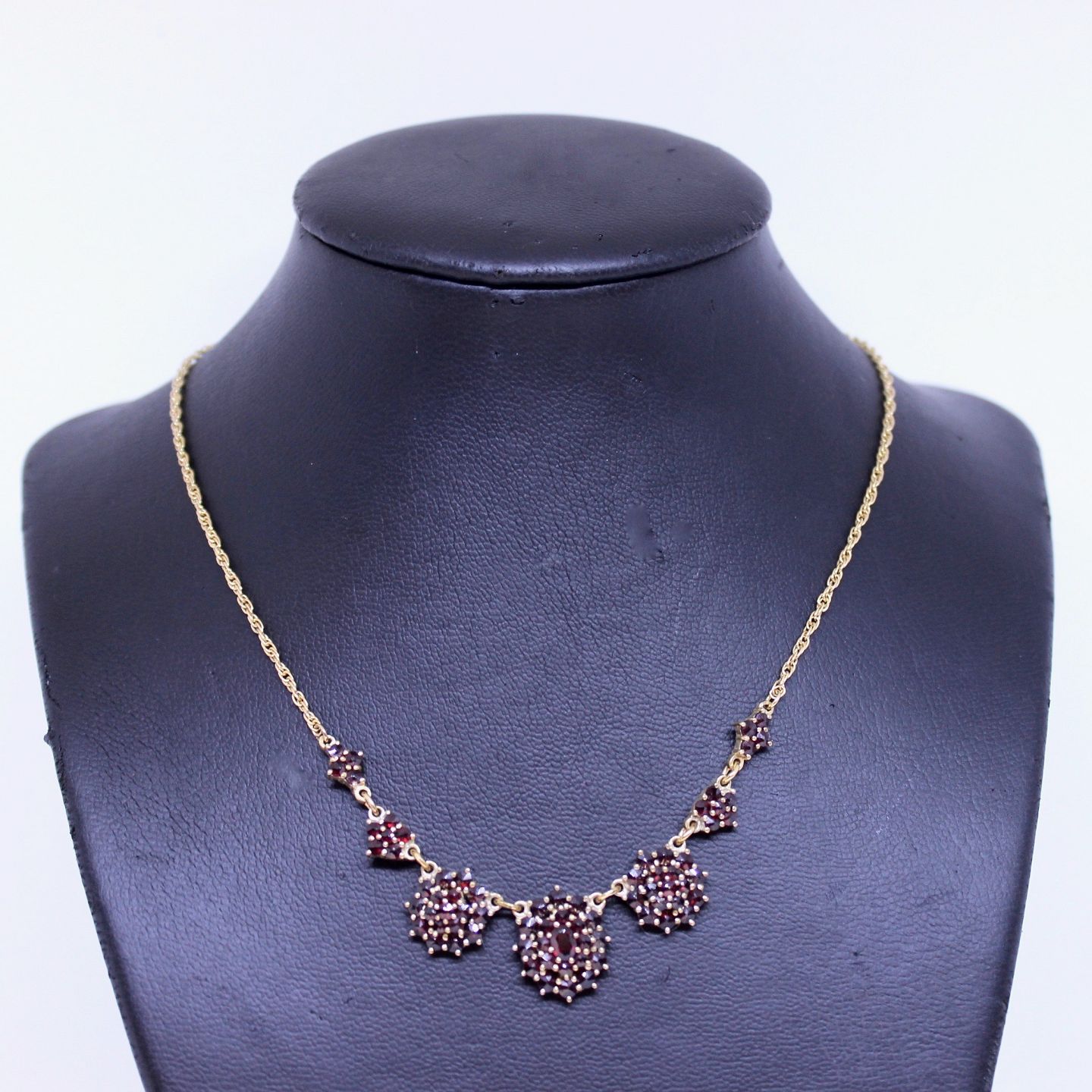 Halskæde af forgyldt 830 sølv og vedhæng dekoreret med granater.
