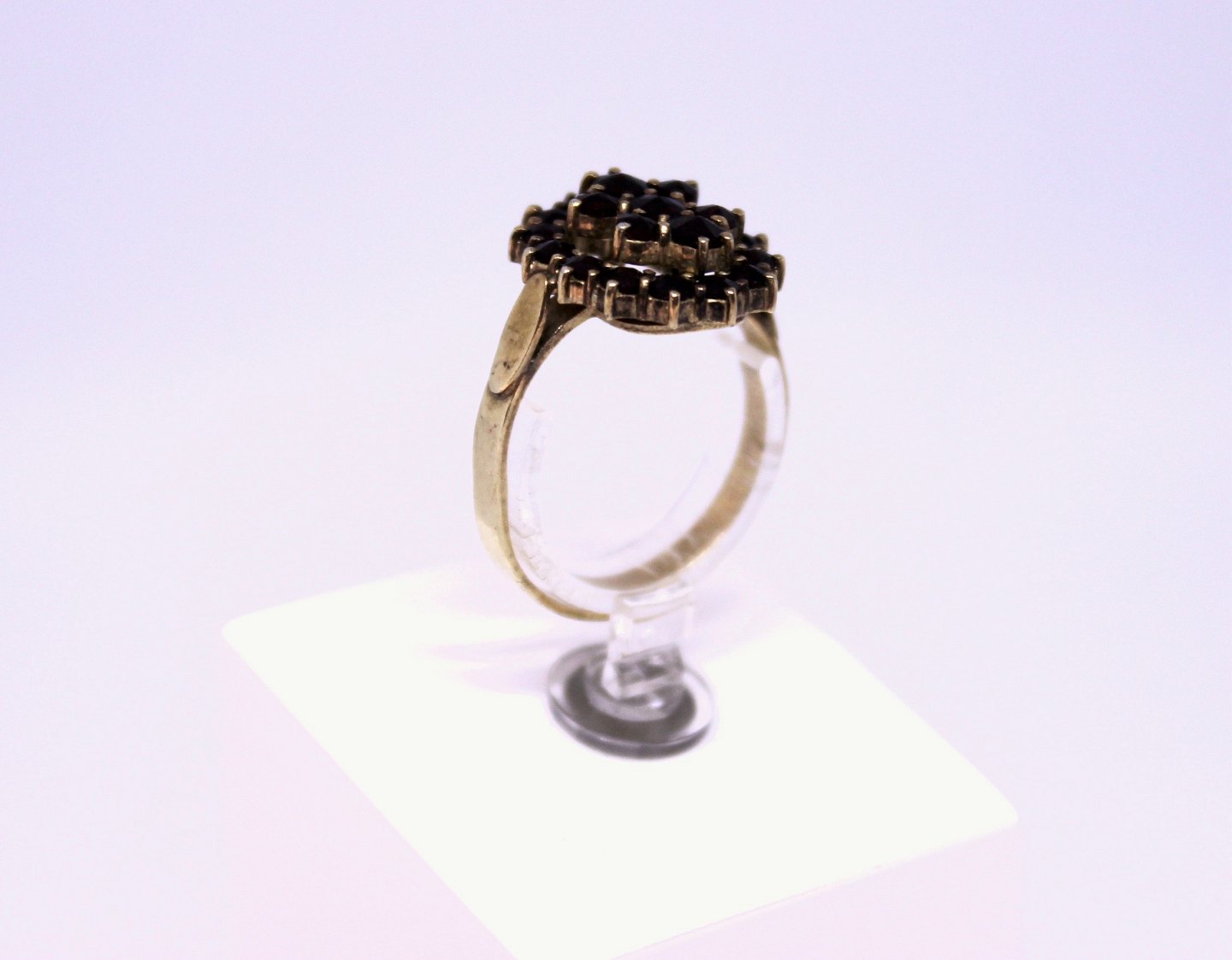 Ring of gilded 830 silver decorated with garnets and stamped AP.
