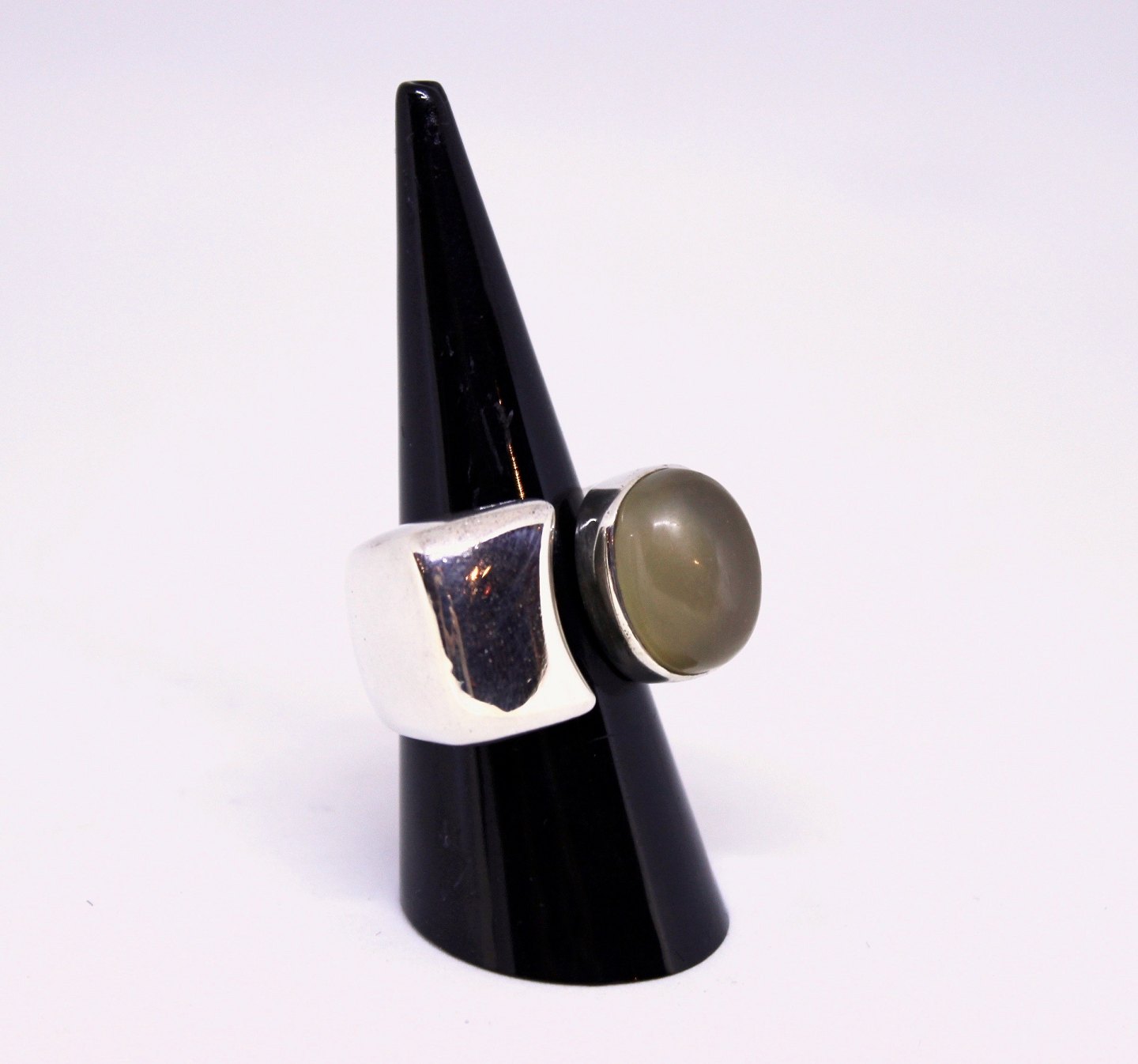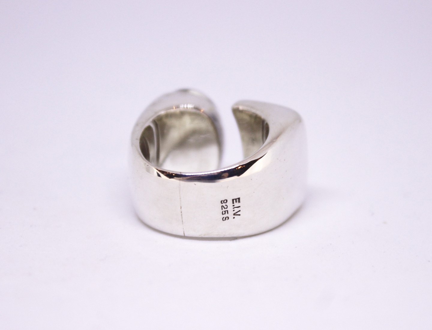 Ring of 925 sterling silver and decorated with green jade, stamped EIV. The ring is in great vintage condition.