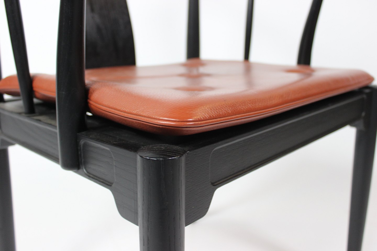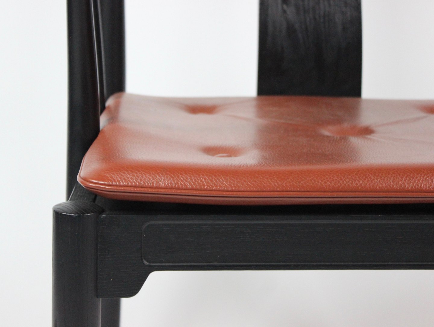 SoldA pair of China chairs of black colored ash and with cushions of cognac colored leather designed by Hans J. Wegner in 1944 and manufactured by Fritz Hansen in 2013. The chairs are in great used condition. Will be sold seperately.