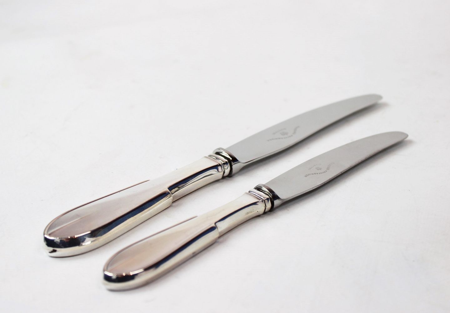 View the price in the text descriptionDinner knife and lunch knife in heirloom silver No. 1 by Hans Hansen. Ask for quantity in stock.