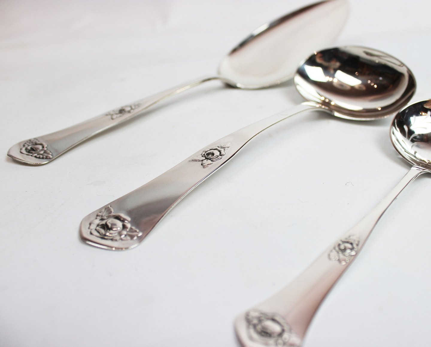 SoldCake server (850 DKK), sauce server (750 DKK) and marmelade spoon (375 DKK) in Rose, hallmarked silver.