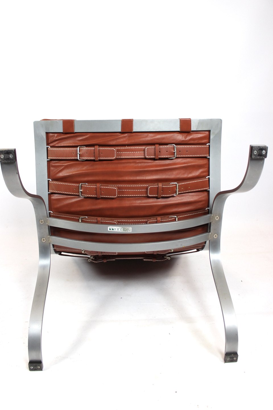 Easy chair, model Ariet, of red leather and steel frame by Arne Norell and Norell Furniture AB.