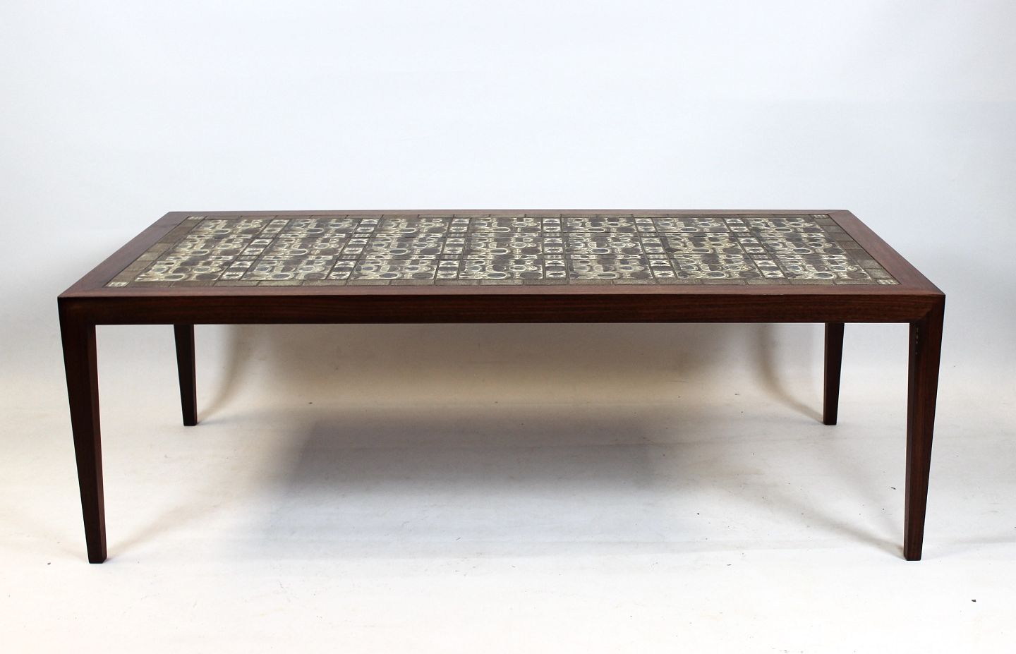 Coffee table of rosewood and brown tiles from Royal Copenhagen, by Severin Hansen for Haslev Furniture Factory from the 1960s.