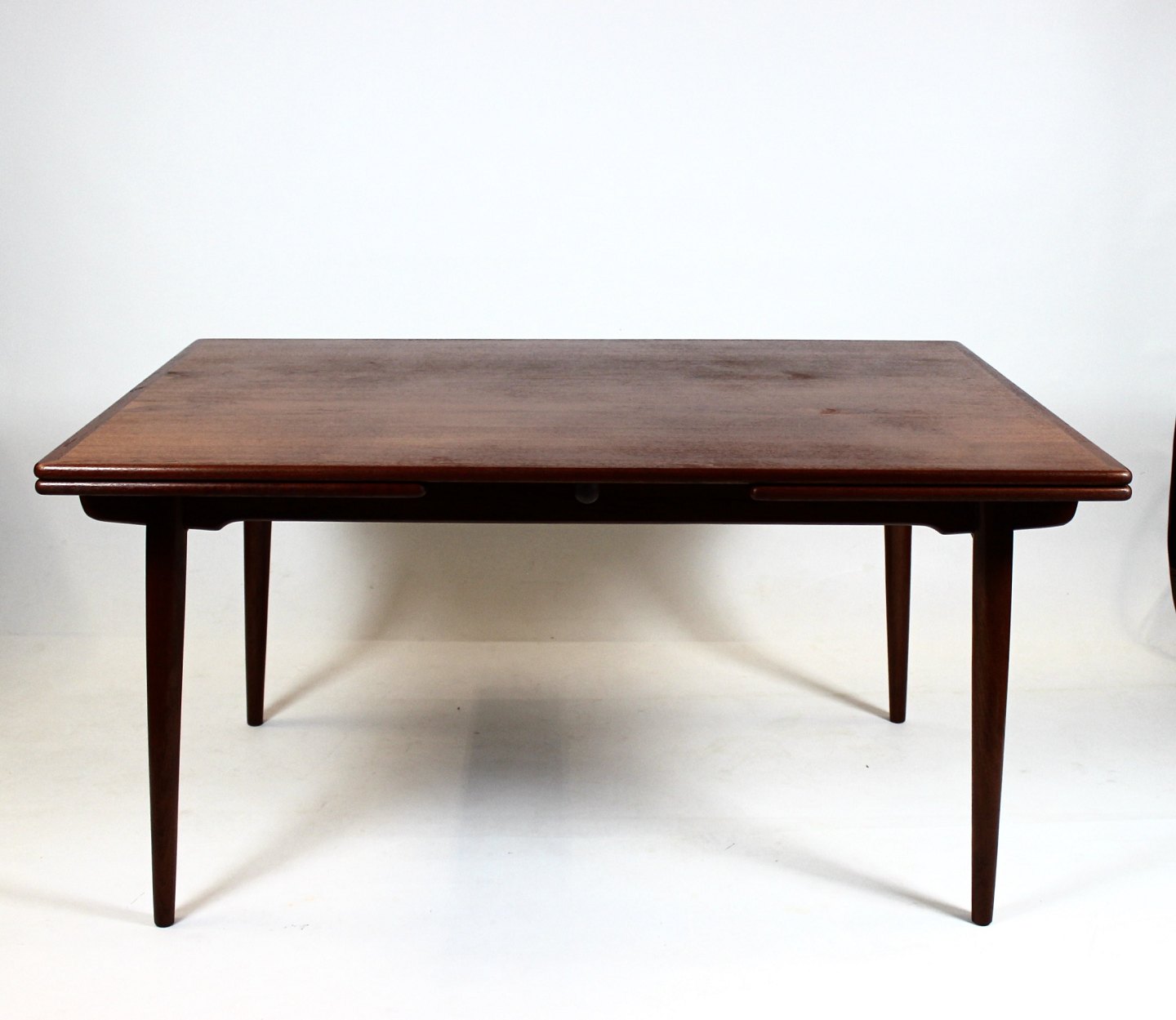 Kontakt os vedrørende prisSpisebord med hollandsk udtræk i teak designet af Hans J. Wegner og fremstillet af Andreas Tuck i 1960erne. Bordet er i flot brugt stand.