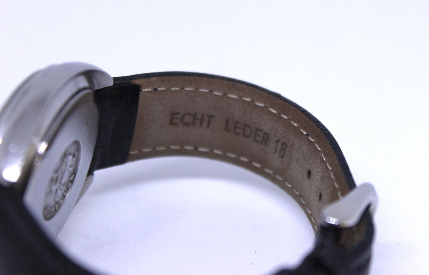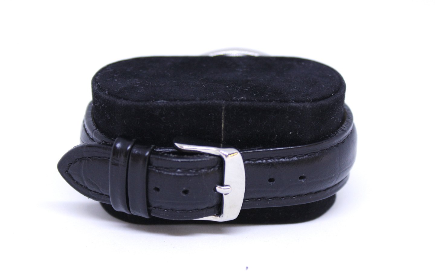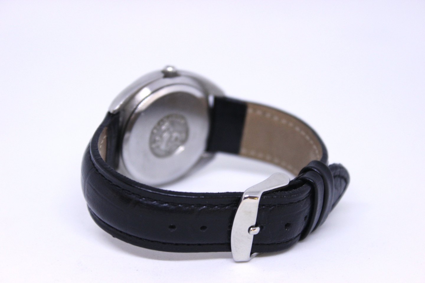 SolgtOmega quartz Seamaster armbåndsur med schweizisk urværk og dato viser. Uret er med sort læderrem og i flot brugt stand.