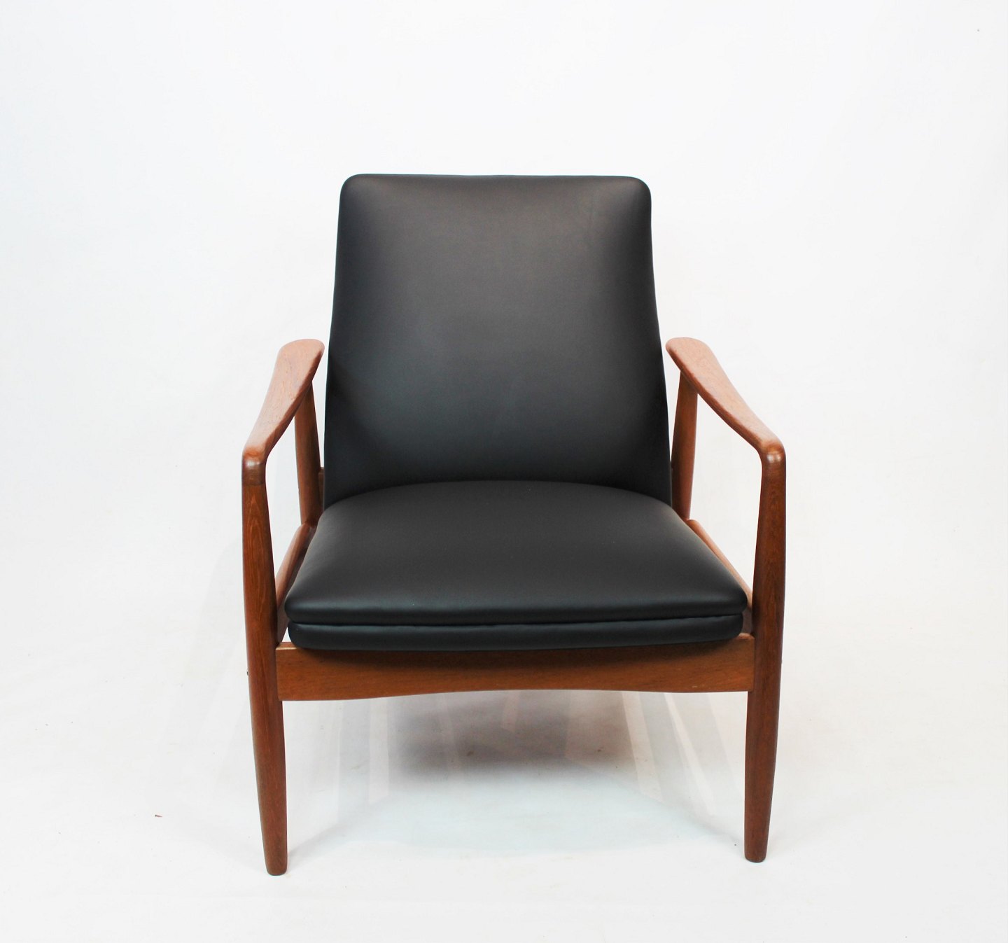 SoldEasy chair in teak and black leather designed by Søren Ladefoged in the 1960s. The chair is in great vintage condition.