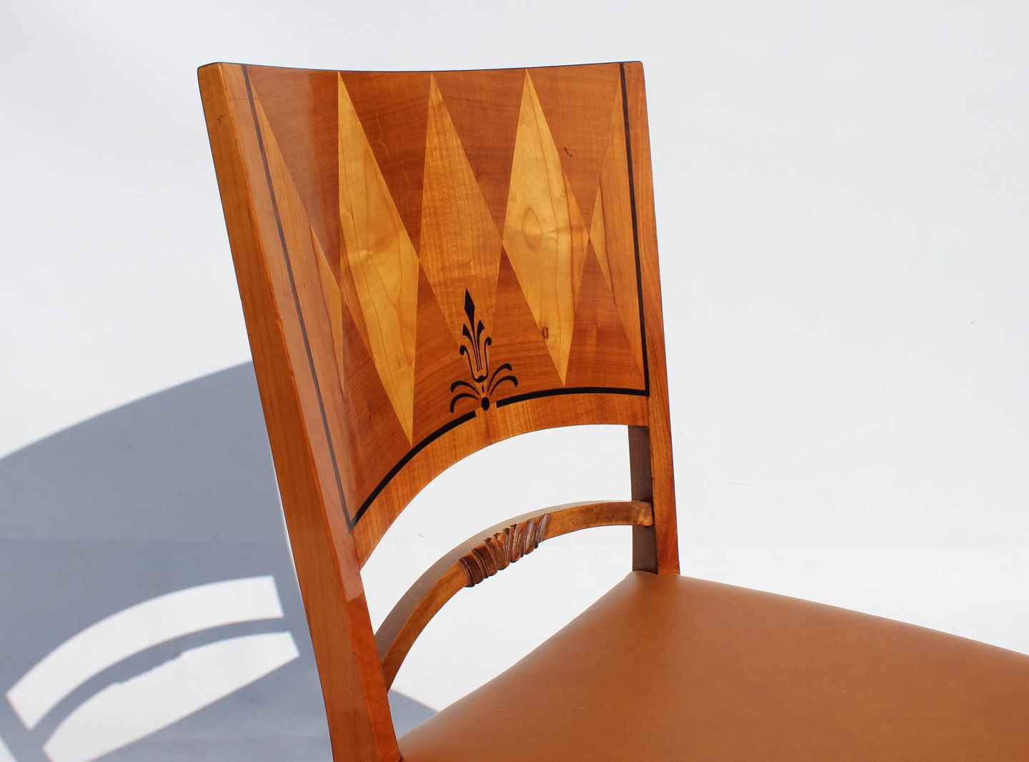 Sæt af Seks Snedkermester Spisestuestole - Forskellige Typer Træ - Cognac farvet elegance læder - 1950