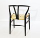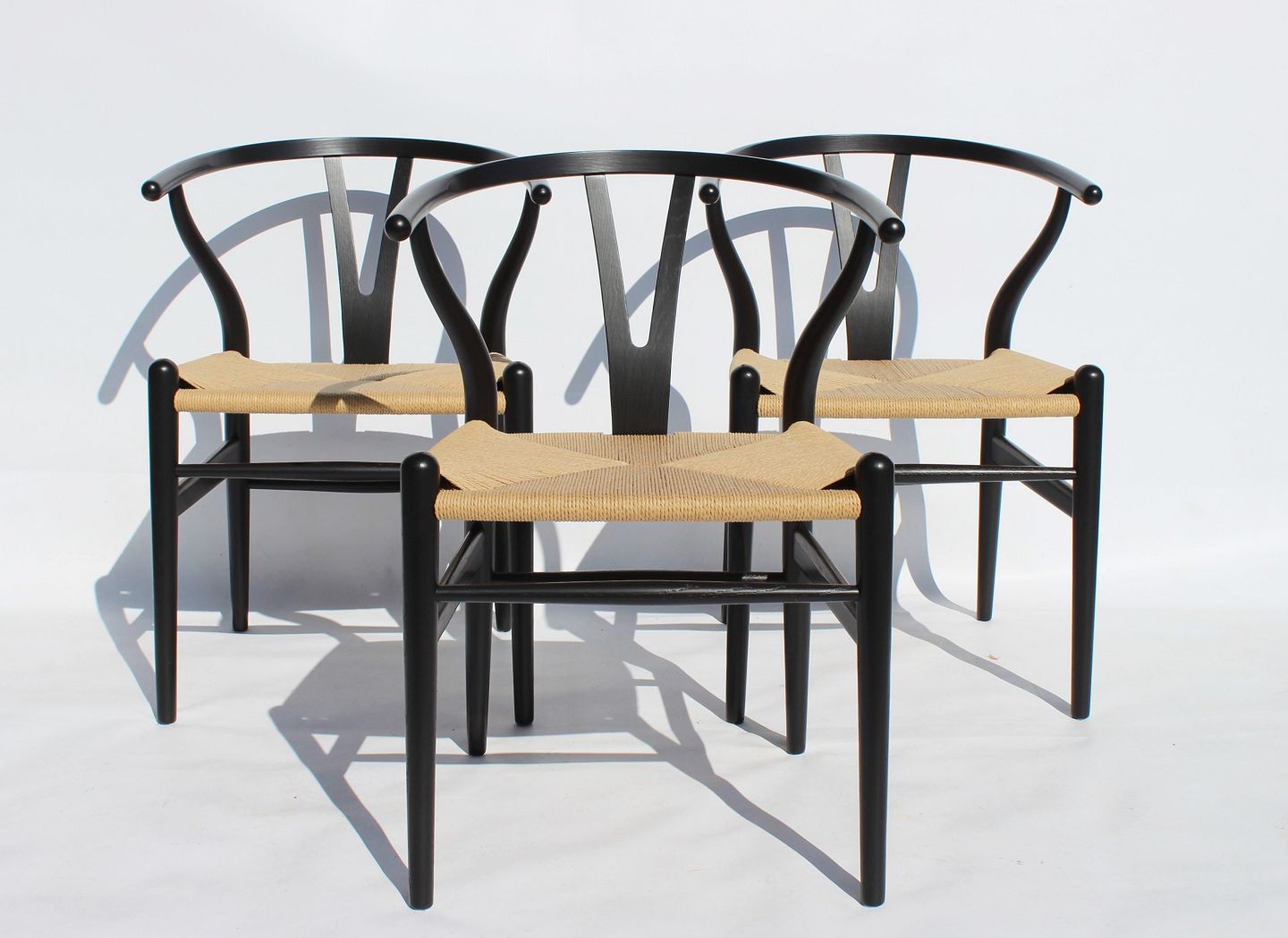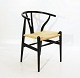 Sæt af tre Y-stole - Model CH24 - Sort Malet Træ - Naturflet - Hans J. Wegner - Carl Hansen & Søn