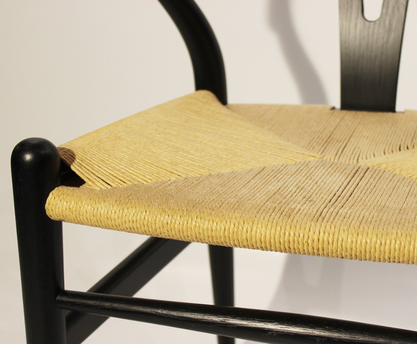 Stolene er konstrueret af sortmalet træ, der giver dem en tidløs og elegant udstråling. Den karakteristiske Y-formede rygstøtte og det håndlavede naturflet sæde tilføjer både visuel interesse og en følelse af letthed til designet. Wegners fokus på ergonomi sikrer, at stolene ikke kun er smukke at se på, men også yder en behagelig og støttende siddeoplevelse.