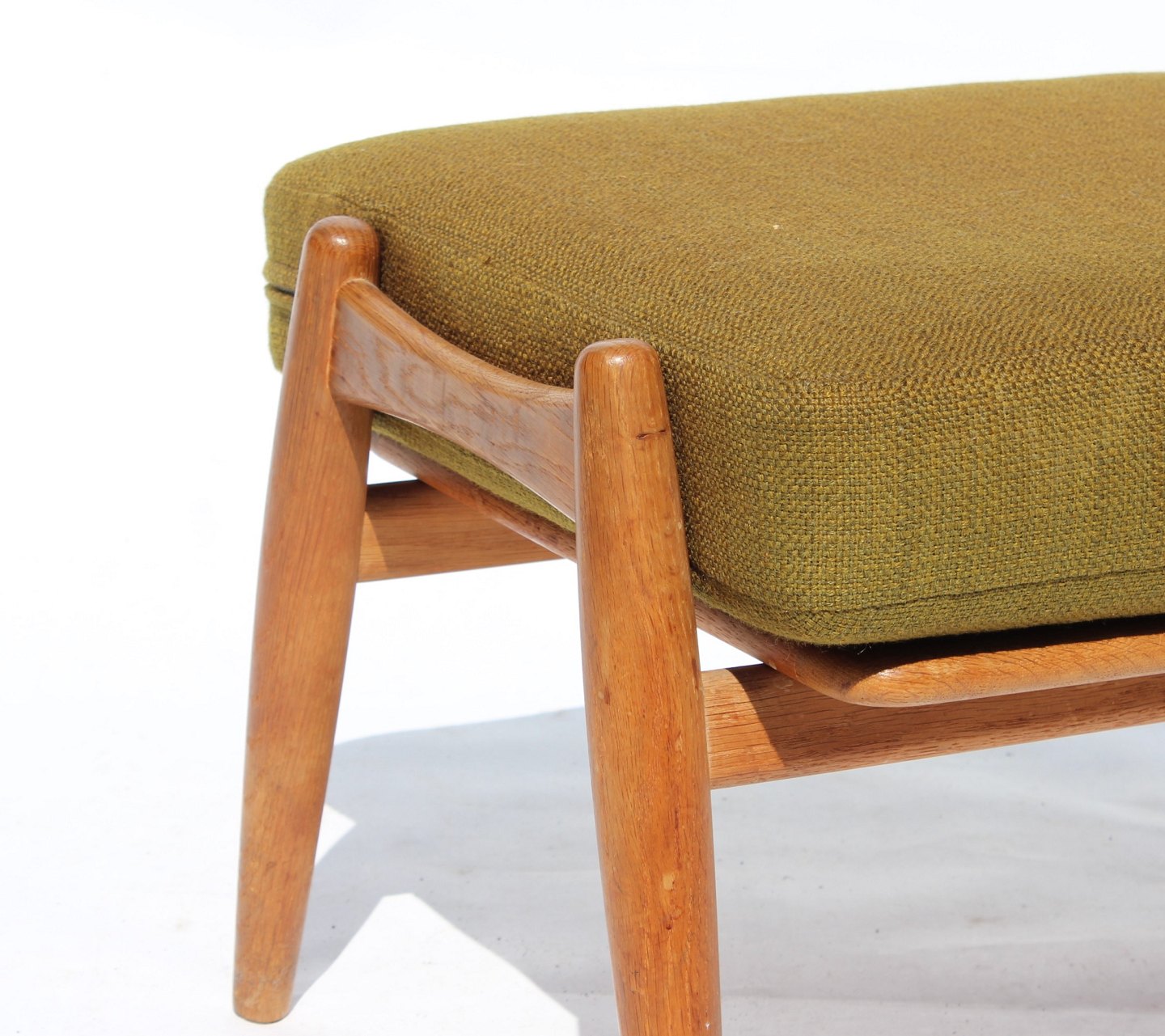 SolgtSkammel til Cigaren, model GE240, af egetræ og grønt uldstof designet af Hans J. Wegner og fremstillet af Getama i 1960erne. Skamlen er i flot stand.