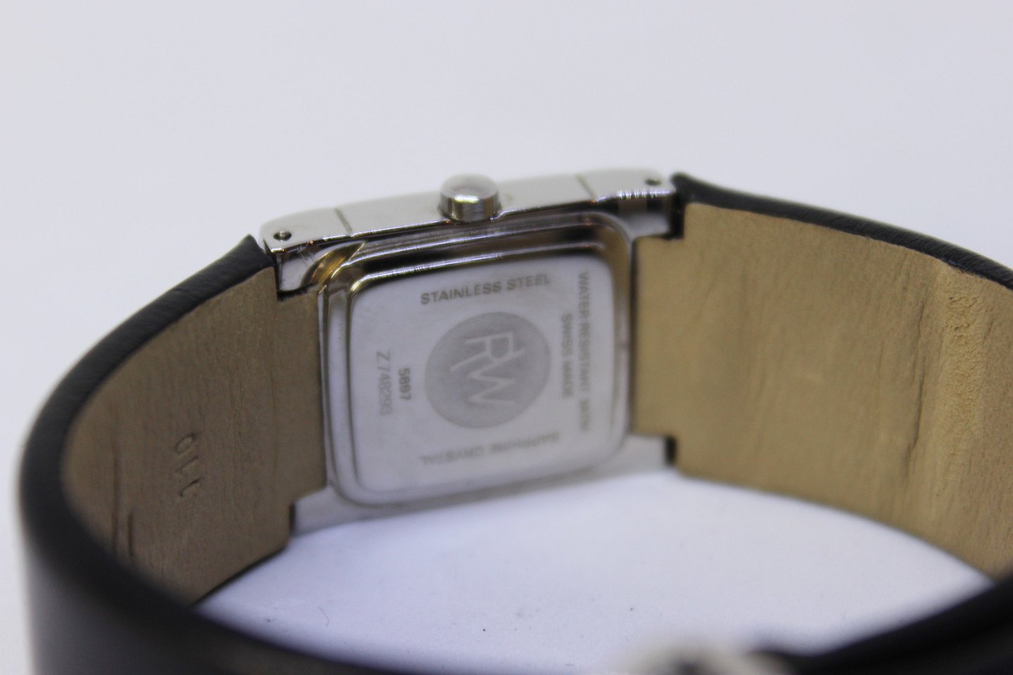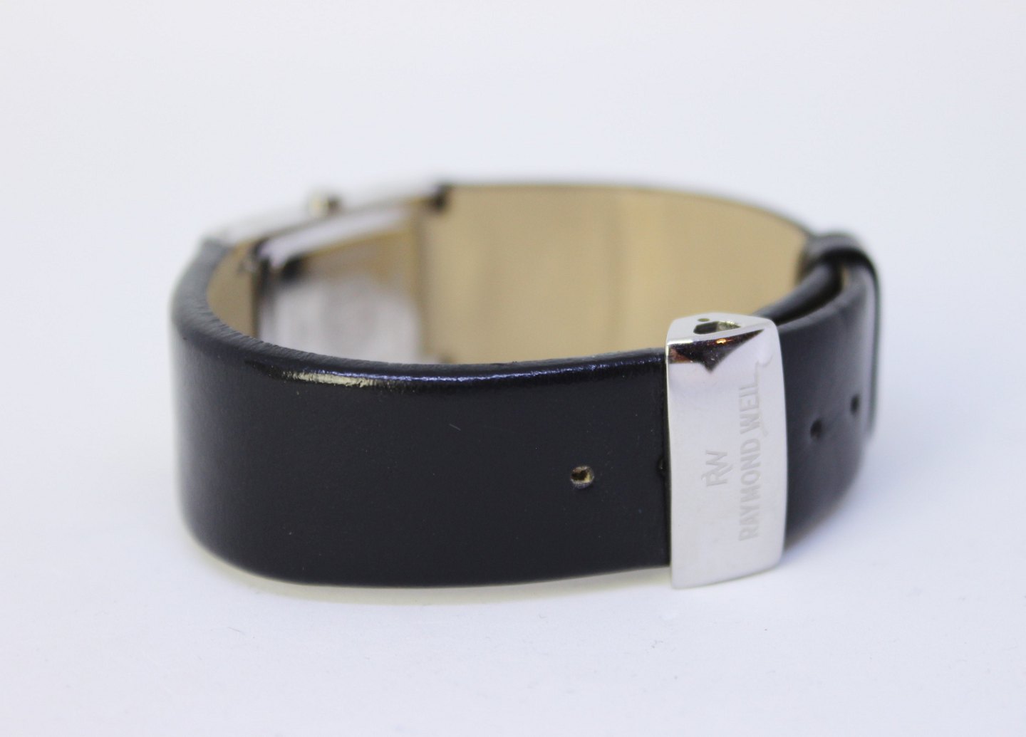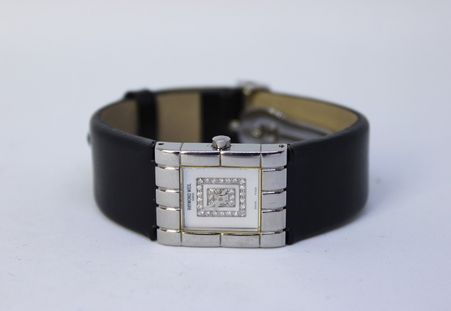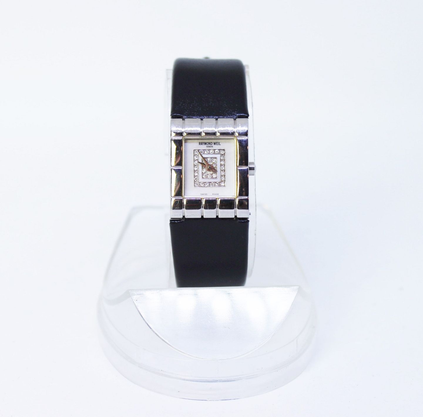 Raymond Weil women's watch of stainless steel with saphire crystal glass, and decorated with stones. The watch is water resistant 3ATM, with Swiss quartz. Model number: 5897.
