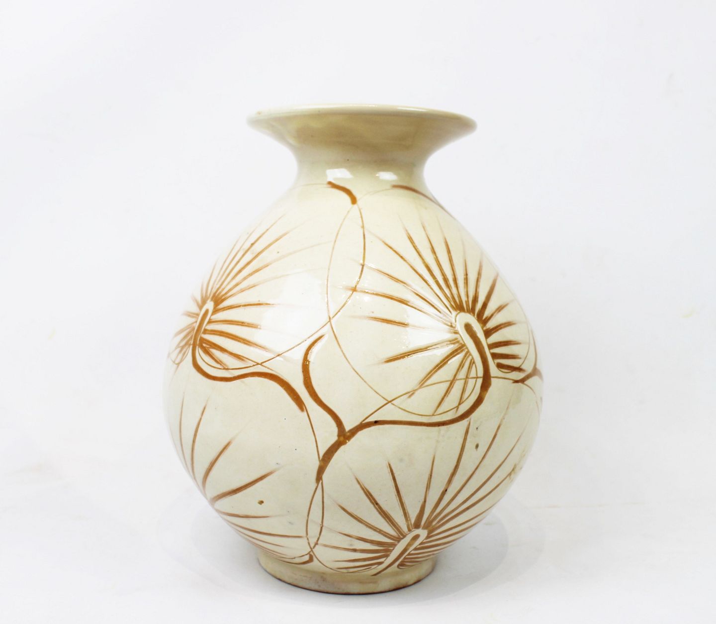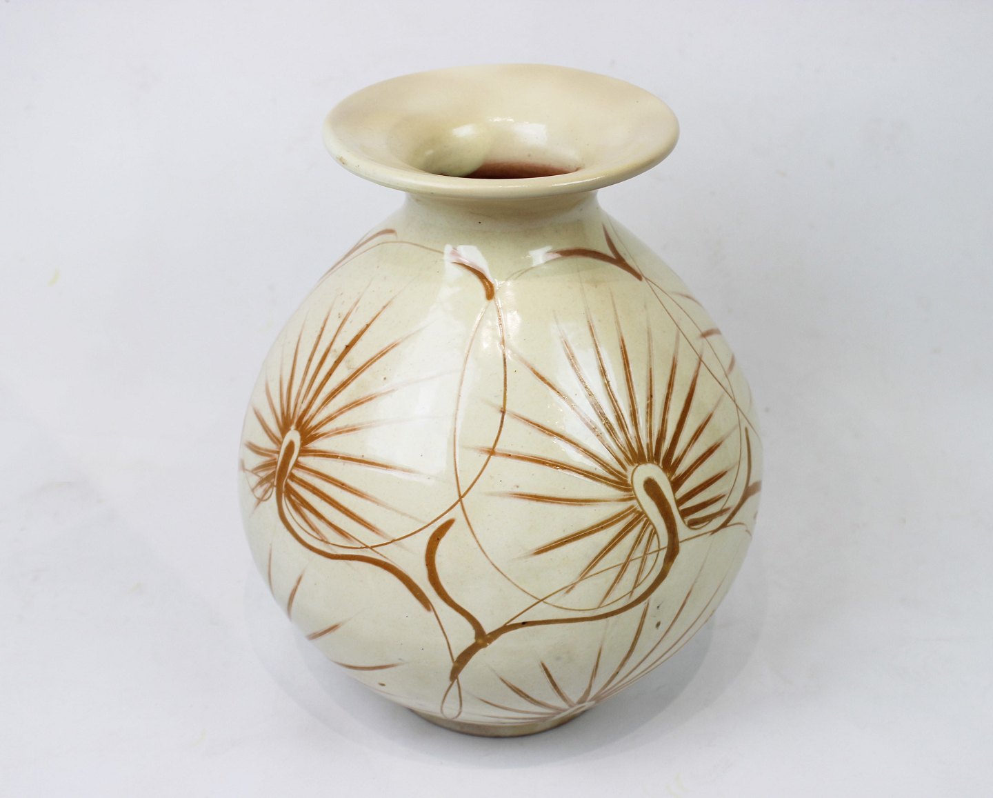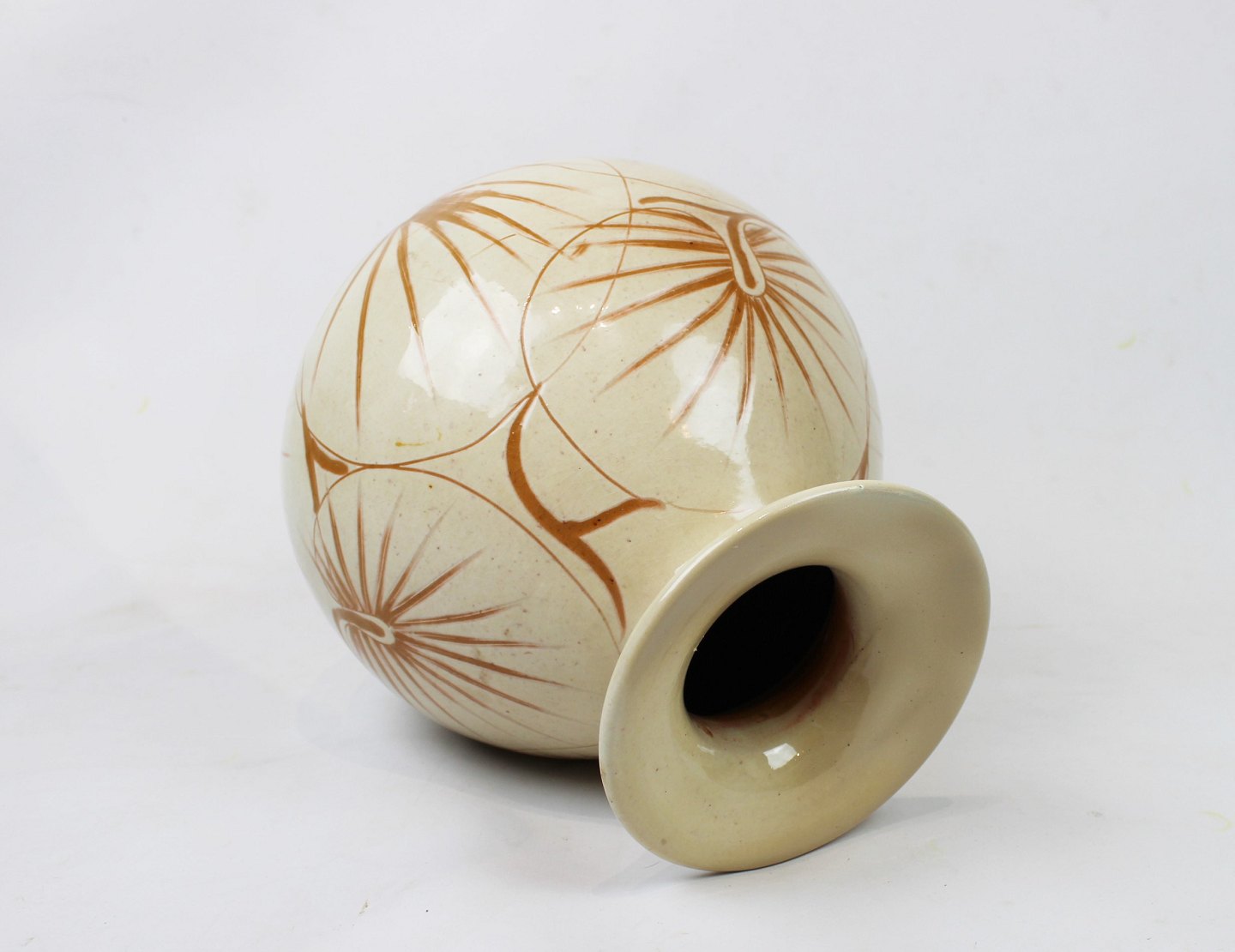 Keramik vase i lyse farver af Herman A. Kähler. Vasen er i flot brugt stand.