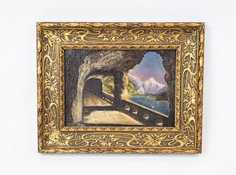 Oil painting with forrest motif and black frame from 1997 with unknown signature.