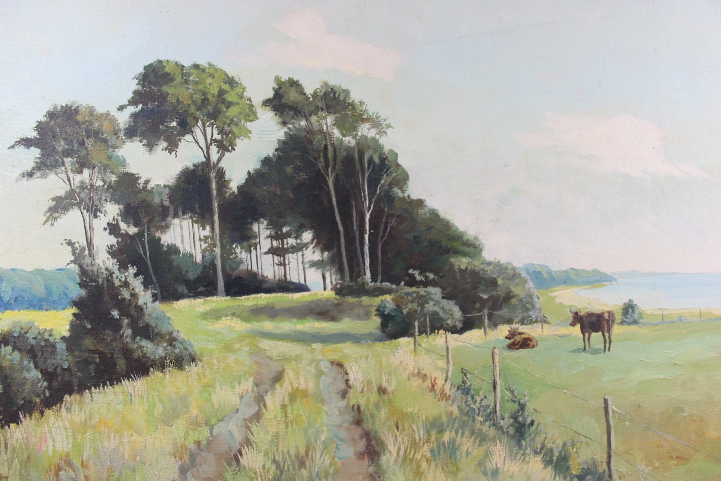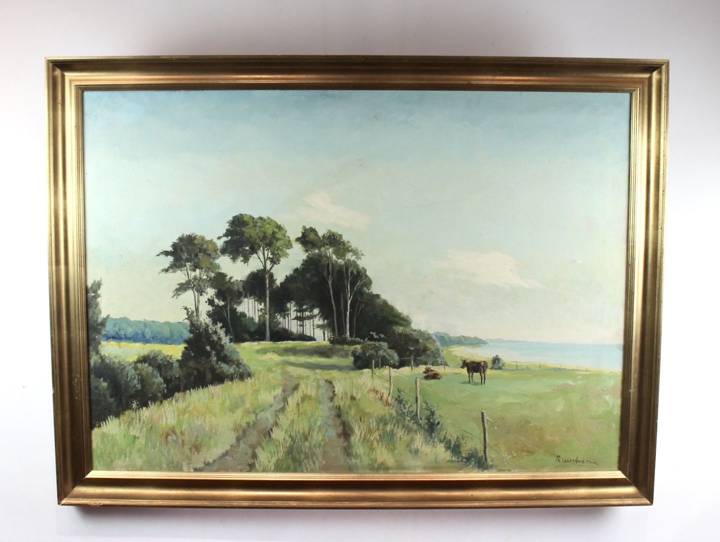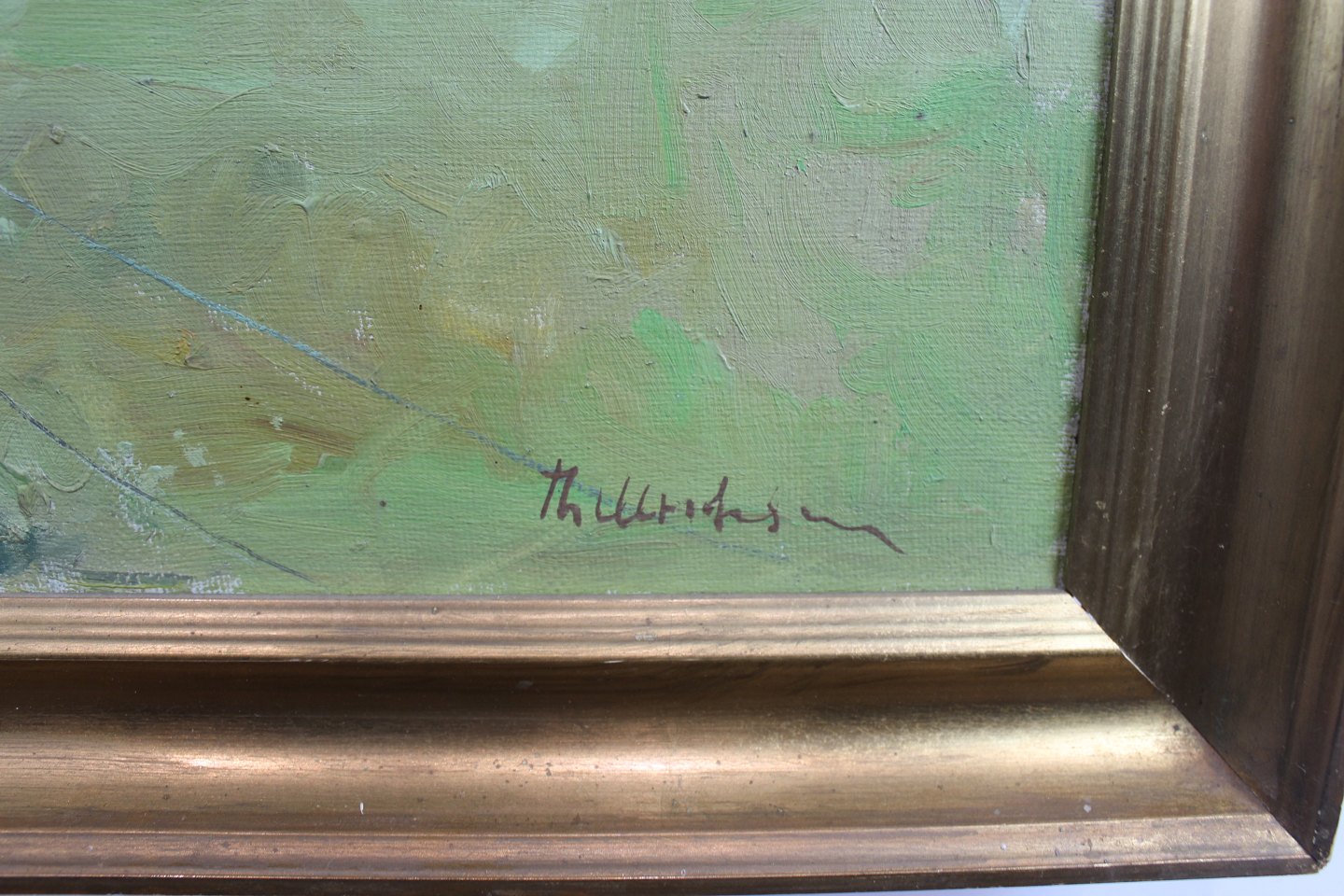 Oil painting with nature landscape and gilded frame signed by T. H. Ulrichsen.