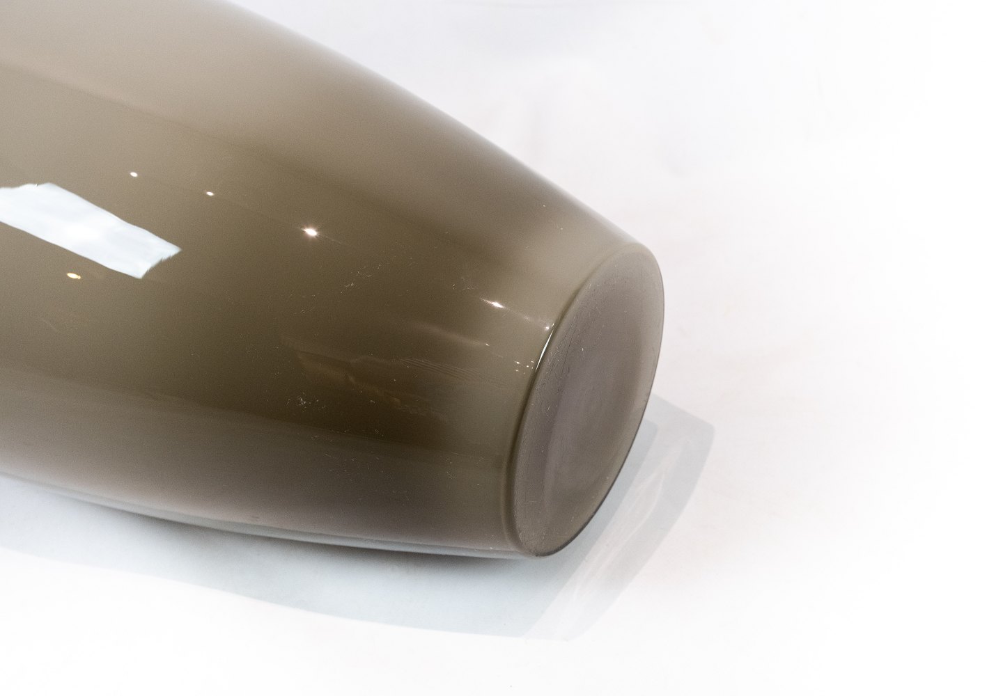 Floor vase of brown glass and of white opaline glass on the inside by Holmegaard.