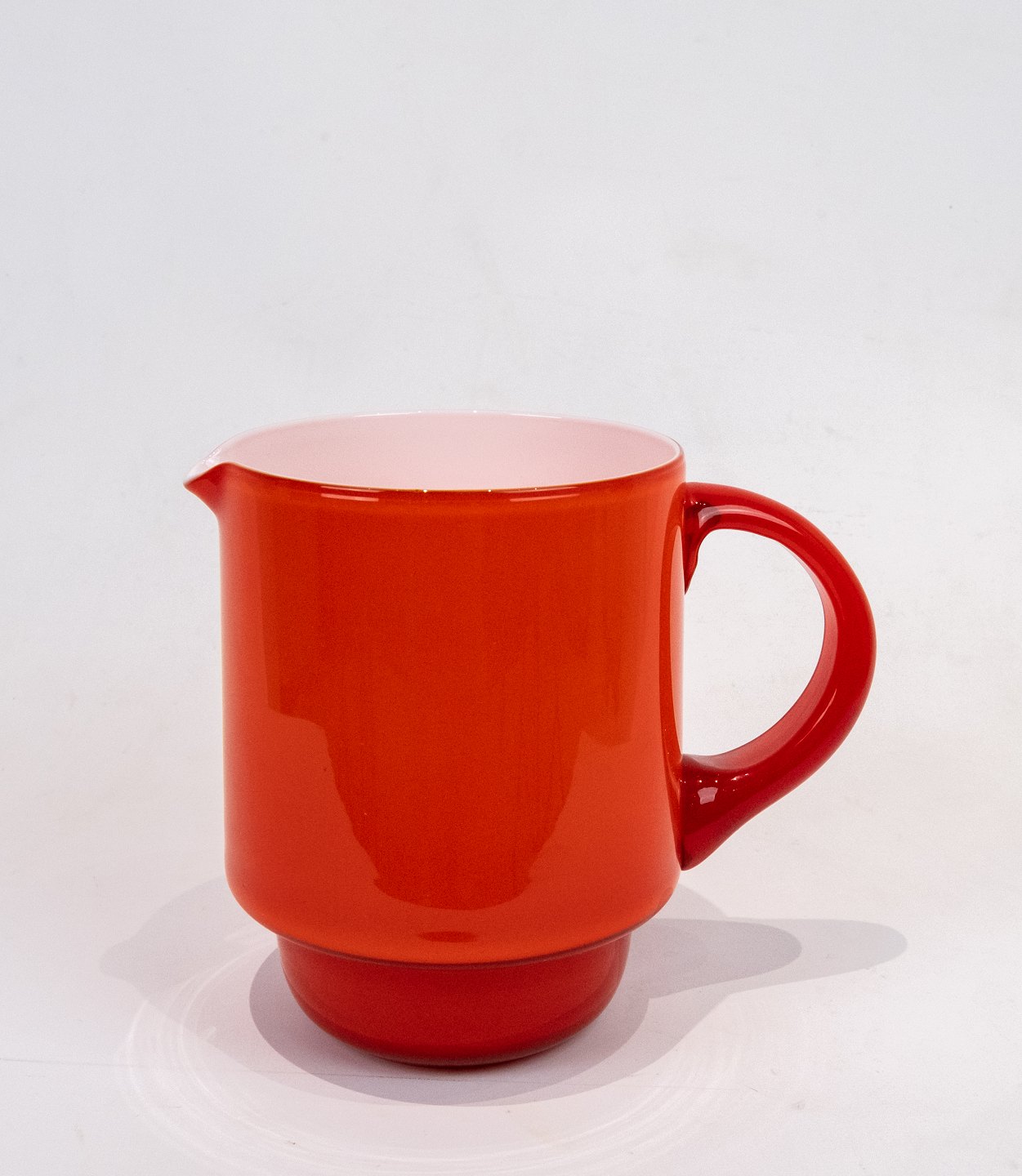 SoldRed glass jug with white opaline glass on the inside from the Palet series by Michael Bang for Holmegaard.