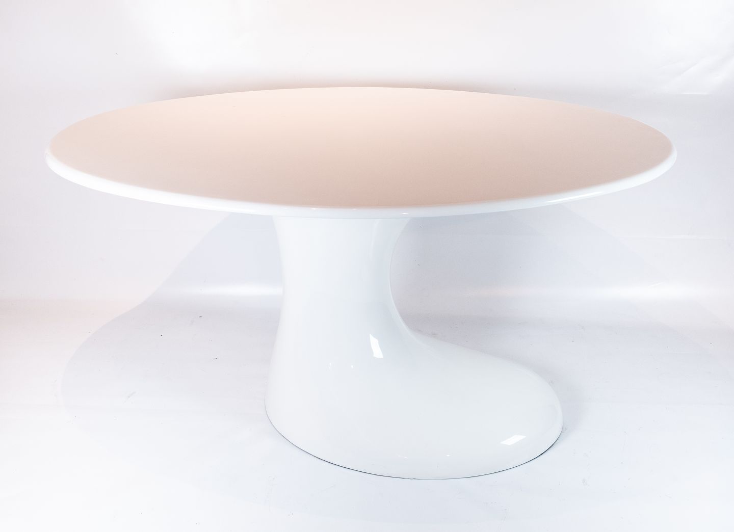Spisebord i hvid plast af dansk design fra 1970erne. Bordet er i flot brugt stand.