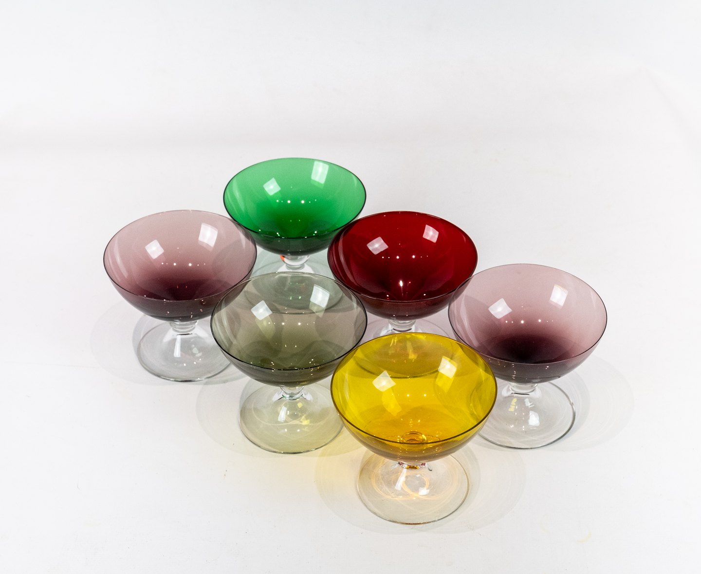 Gamle franske cocktail glas i forskellige stærke farver fra 1930erne. Spørg for antal på lager.