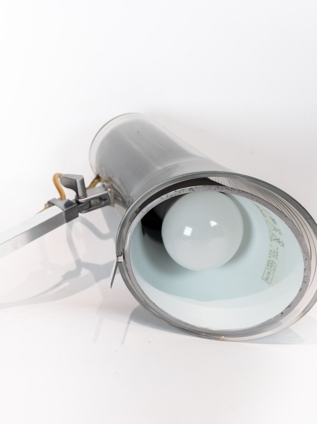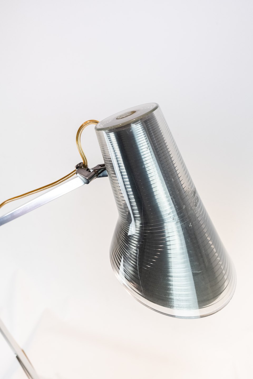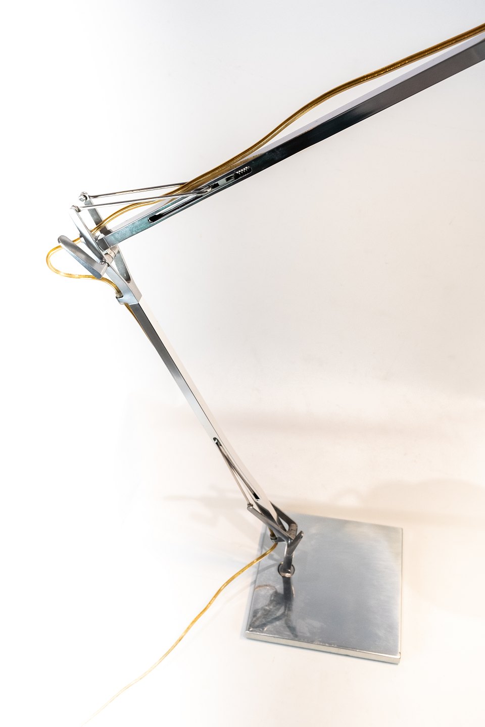 Bordlampe af rustfrit stål og af italiensk design, af Flos. Lampen er i flot brugt stand og vi har 2 stk. på lager.