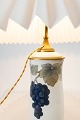 Porcelænsbordlampe af Royal Copenhagen med dekorationsnummer 583/67. Skærmen er håndmalet og håndfoldet i papir.