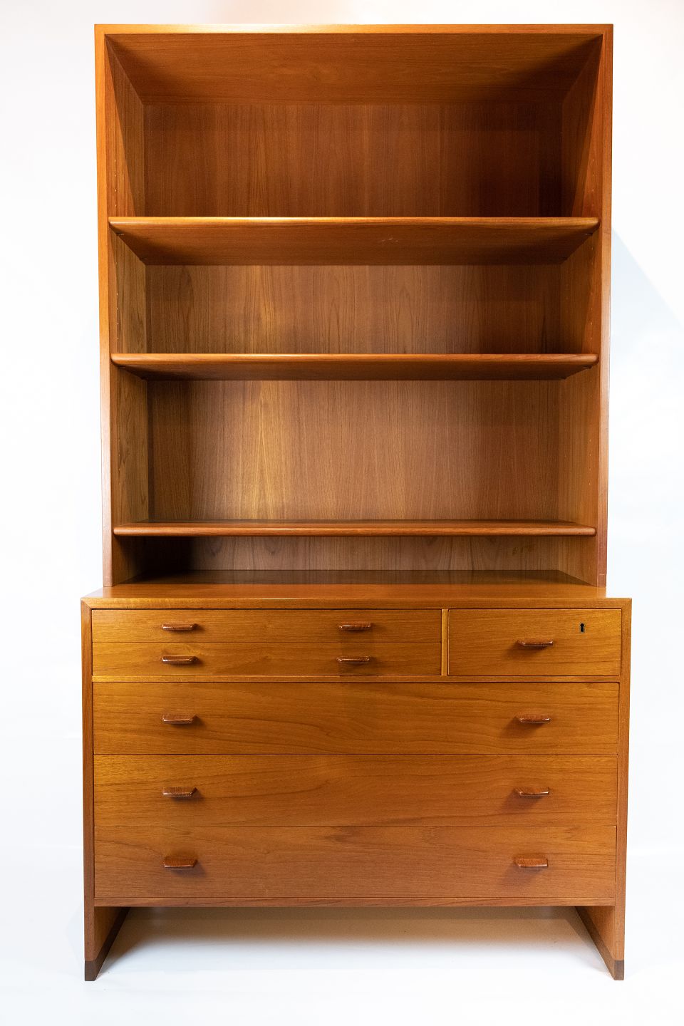 Please contact us for price informationThis bookcase, designed by renowned Danish architect Hans J. Wegner in 1960, is a timeless masterpiece of teak wood craftsmanship. With three large shelves and two smaller drawers, it provides ample storage space for your books and personal belongings. Wegner's unique design and focus on functionality and aesthetics ensure that this bookcase is not only practical, but also beautifully integrated into any room.