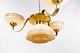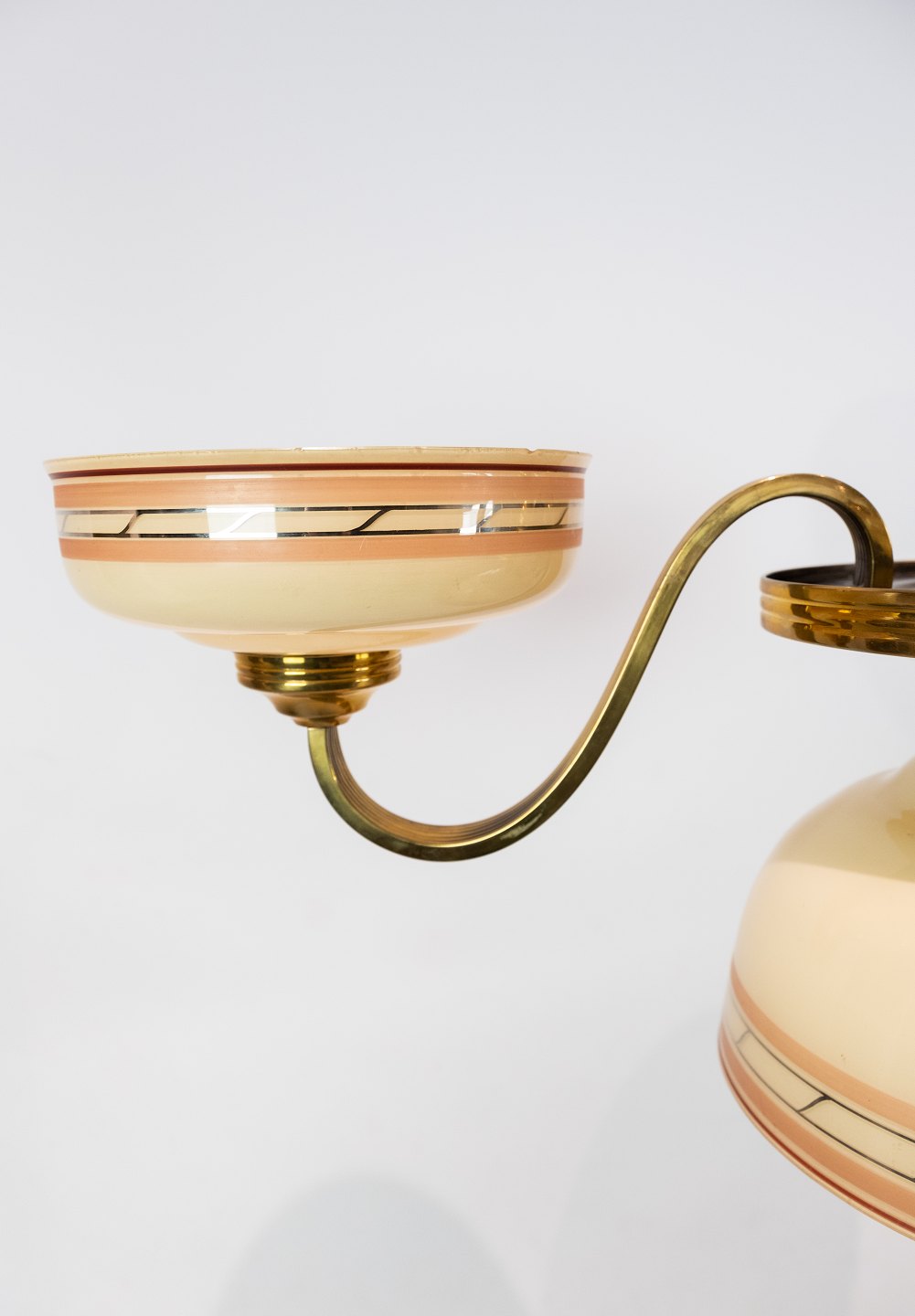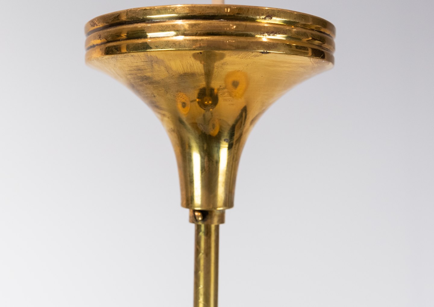 Ceiling pendant of brass and shades of opaline glass from the 1940s.