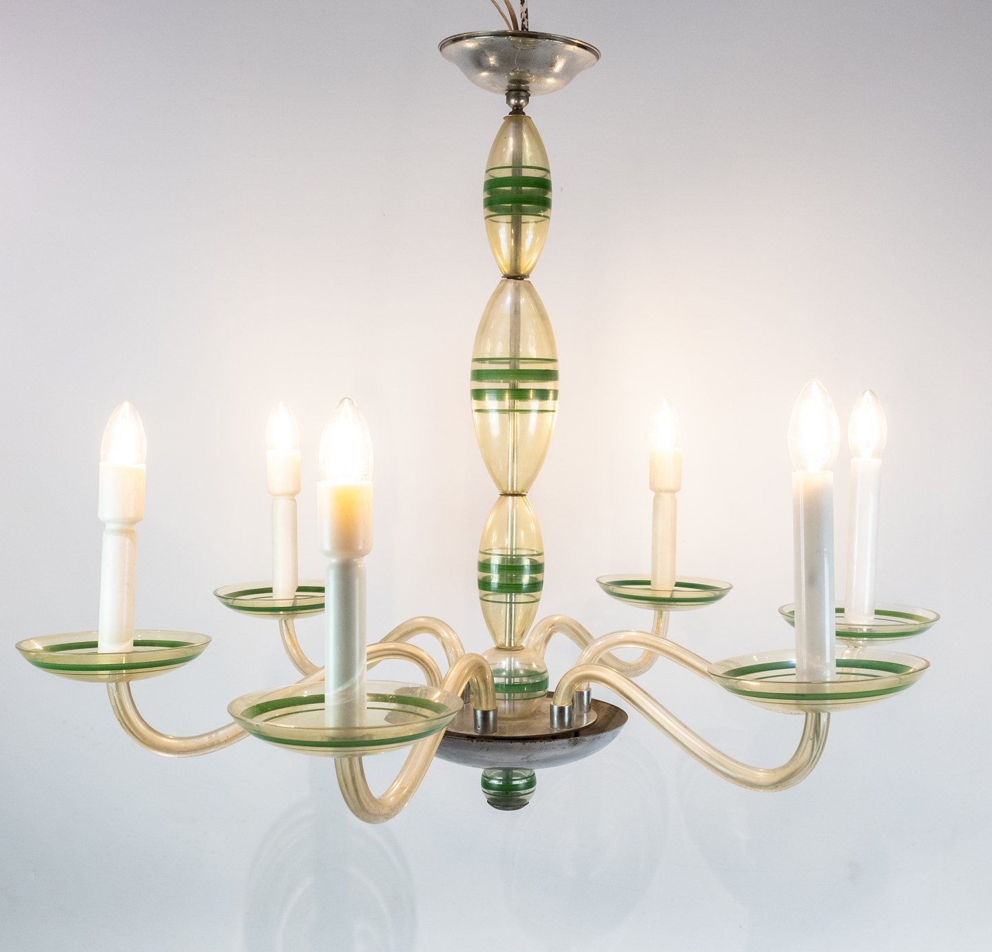 Chandelier of opaline glass decorated with green colours. The lamp is in great condition.