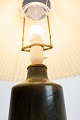 Keramik bordlampe i mørkegrøn farve af Eva Stær Nielsen for Saxbo. Skærmen er hånd foldet og håndmalet i papir.