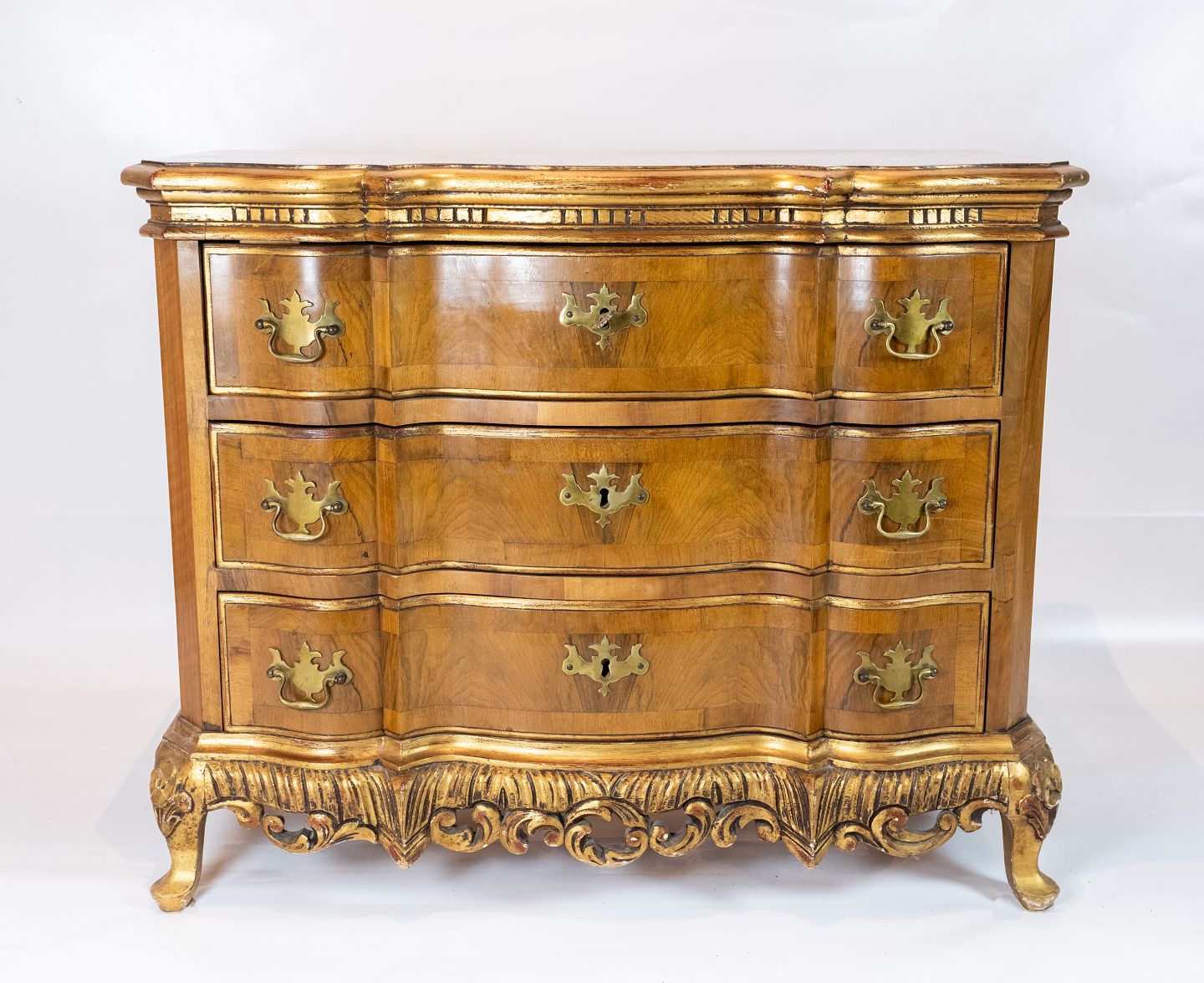 Kontakt os vedrørende prisKommode af poleret valnøddetræ dekoreret med forgyldning og håndtag af messing fra 1860erne. Møblet er i flot brugt stand.