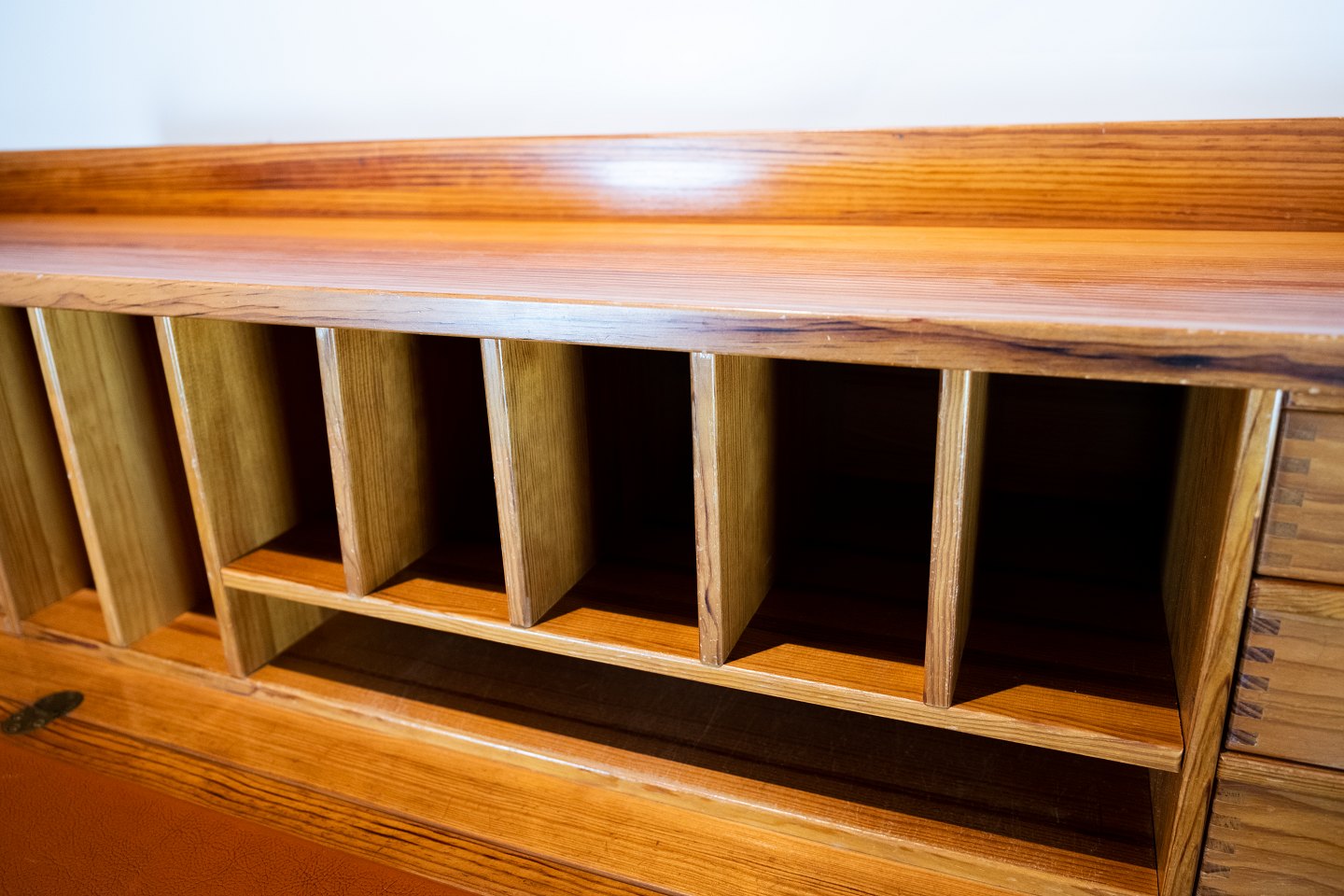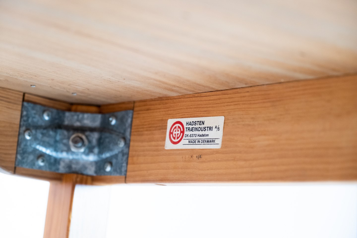 Skrivebord i Oregon pine, designet af Andreas Hansen for Hadsten Træindustri, 1960’erne. Dansk designklassiker i massivt træ.